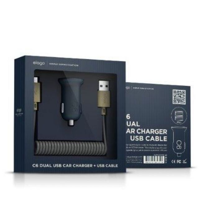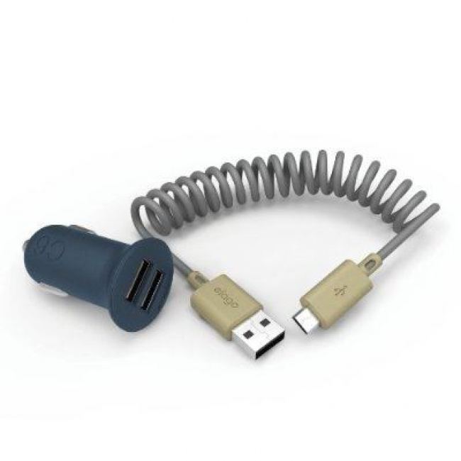 Elago C6 Dual USB Car Charger - зарядно за кола с microUSB кабел за Samsung, HTC, LG, Sony и устройства с microUSB (син)