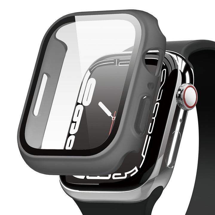Elago Clear Shield Case - качествен твърд кейс с вграден стъклен протектор за дисплея на Apple Watch 8 41мм, Apple Watch 7 41мм (сив)