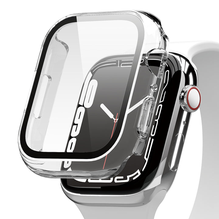 Elago Clear Shield Case - качествен твърд кейс с вграден стъклен протектор за дисплея на Apple Watch 8 45мм, Apple Watch 7 45мм (прозрачен)