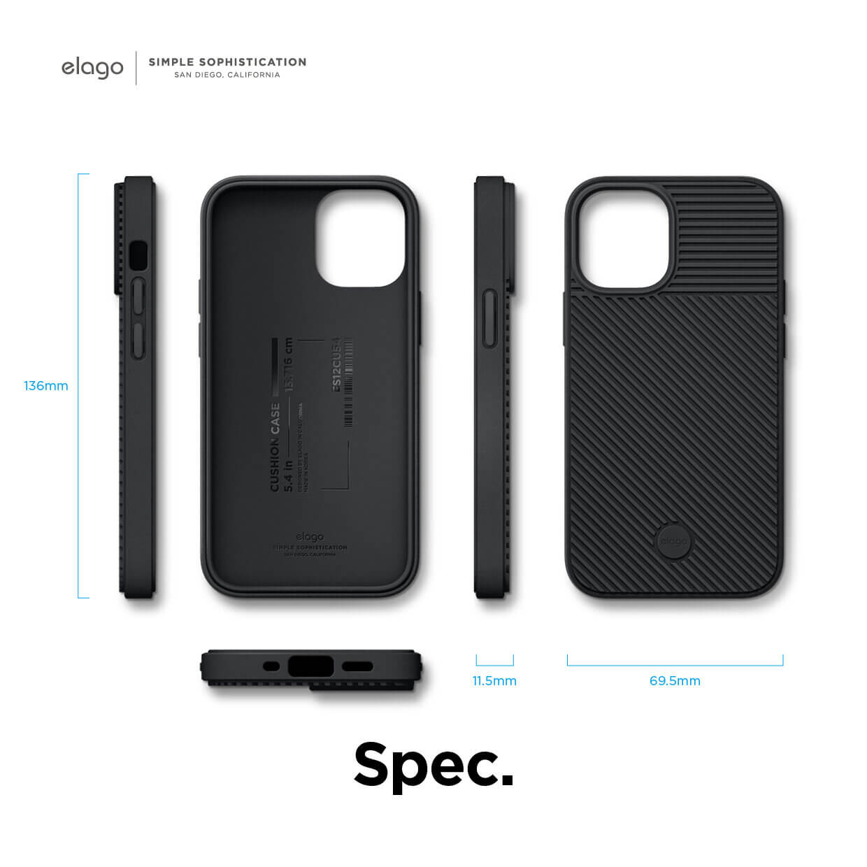 Elago Cushion Case - удароустойчив силиконов (TPU) калъф за iPhone 12 mini (черен)