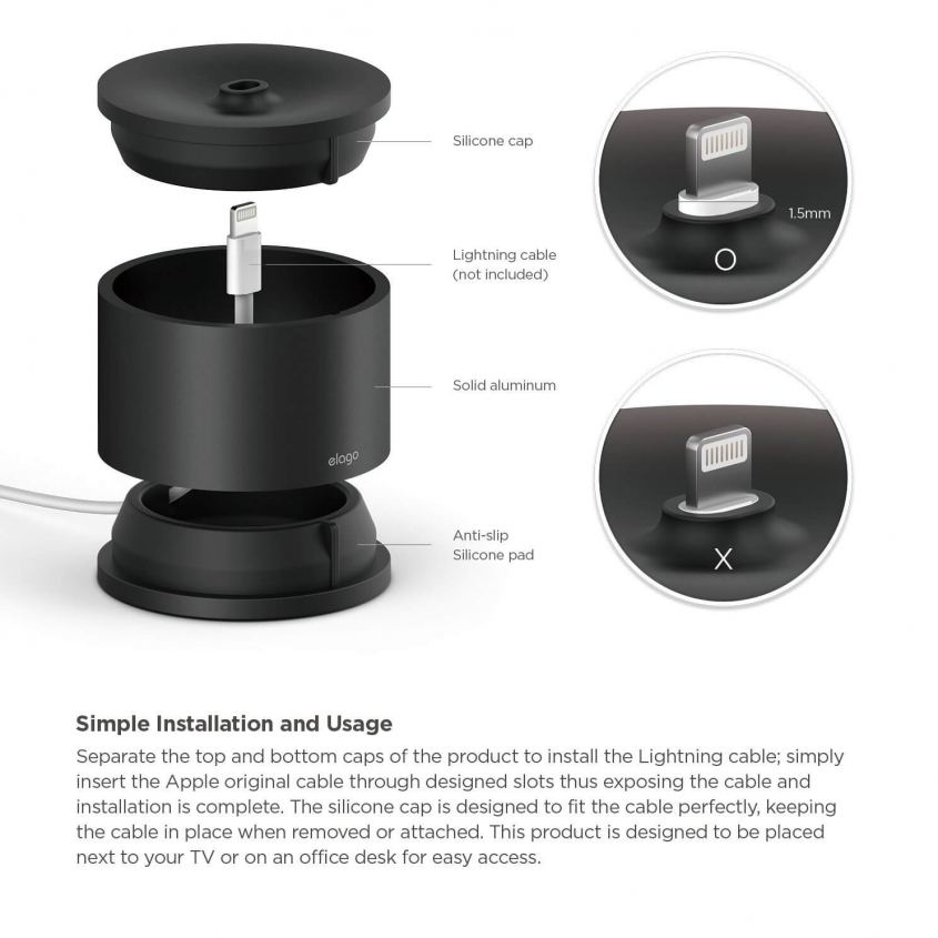 - Внимание: док станцията е създадена специално и само за оригиналния Apple Lightning USB кабел, т.е. други кабели не са съвместими с нея