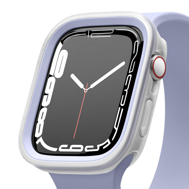 Elago Duo Apple Watch Case - силиконов (TPU) кейс с две сменяеми поликарбонатни части за Apple Watch 7 41мм, Apple Watch 8 41мм (прозрачен-мат и лилав)