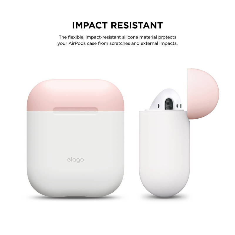 Elago Duo Silicone Case - силиконов калъф за Apple Airpods (бял-розов)