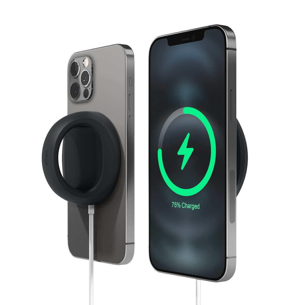 - Поставянето на вашия Apple MagSafe Charger в силиконовата поставка е изключително лесно, а самата поставка се прикрепя към гърба на вашия iPhone чрез самия MagSafe Charger