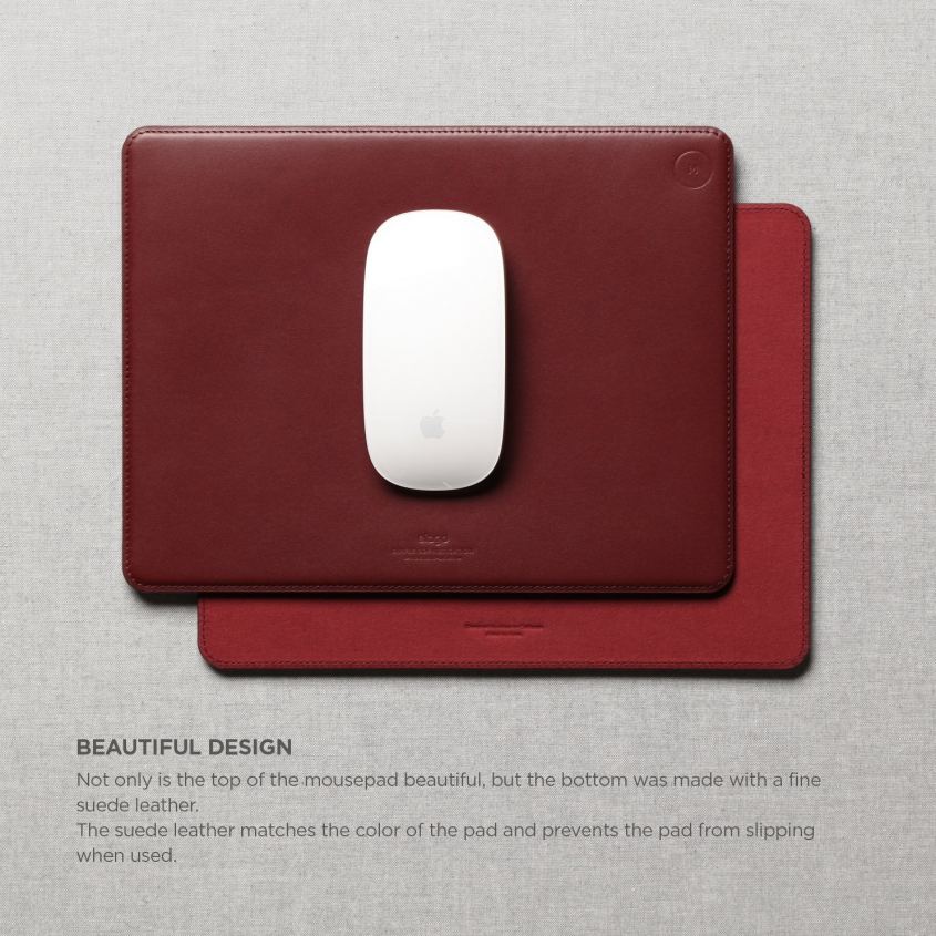 Elago Leather Mouse Pad - дизайнерски кожен пад за мишка (бургунди)