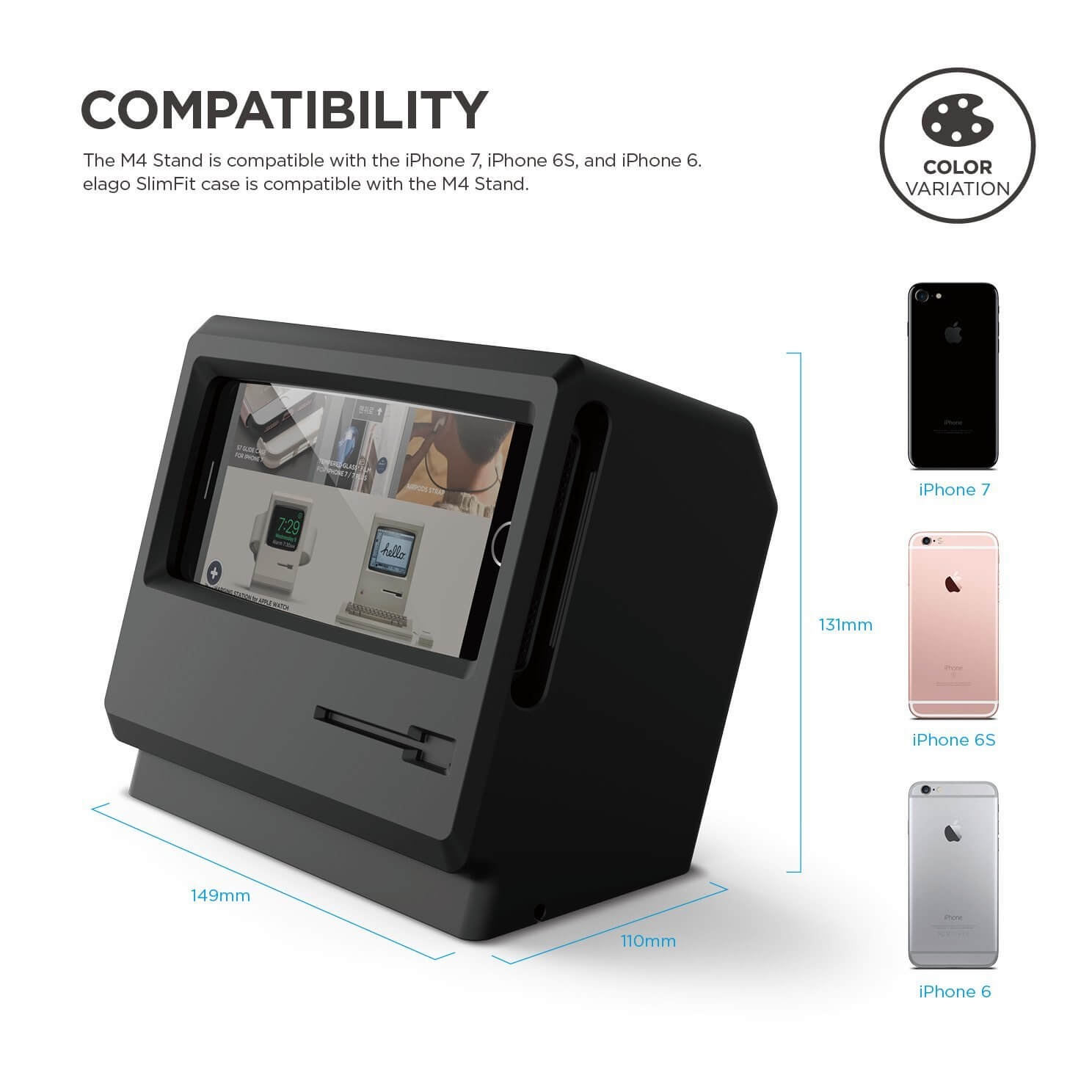 Elago M4 Stand - силиконова винтидж поставка в стила на стар Apple монитор за iPhone SE 2020, iPhone 7, iPhone 8, iPhone 6S, iPhone 6 (черна)