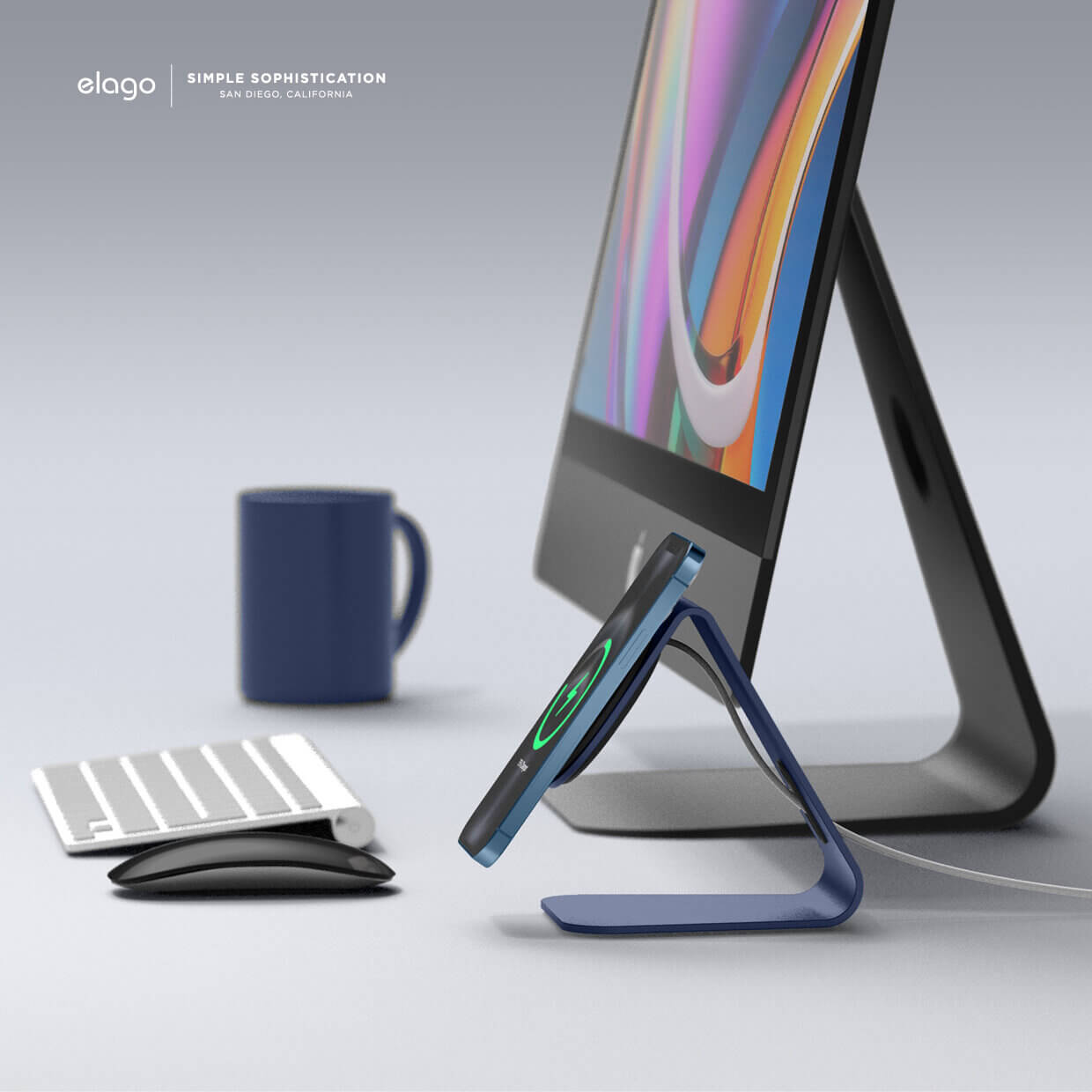 Elago MS4 Aluminum Charging Stand for MagSafe - алуминиева поставка за безжично зареждане на iPhone чрез поставяне на Apple MagSafe Charger (тъмносин)
