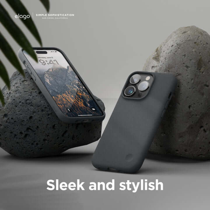 Elago Pebble Case - удароустойчив силиконов (TPU) калъф за iPhone 14 Pro (тъмносив)