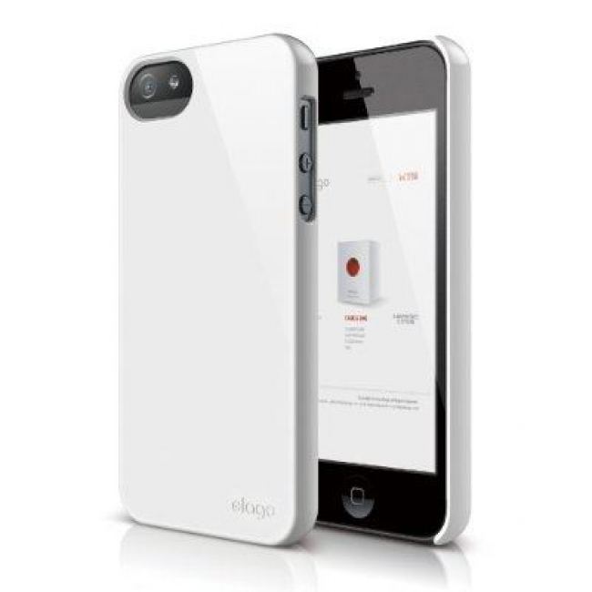 Elago S5 Slim Fit 2 Case + HD Clear Film - кейс и HD покритие за iPhone 5 (бял-лъскав)