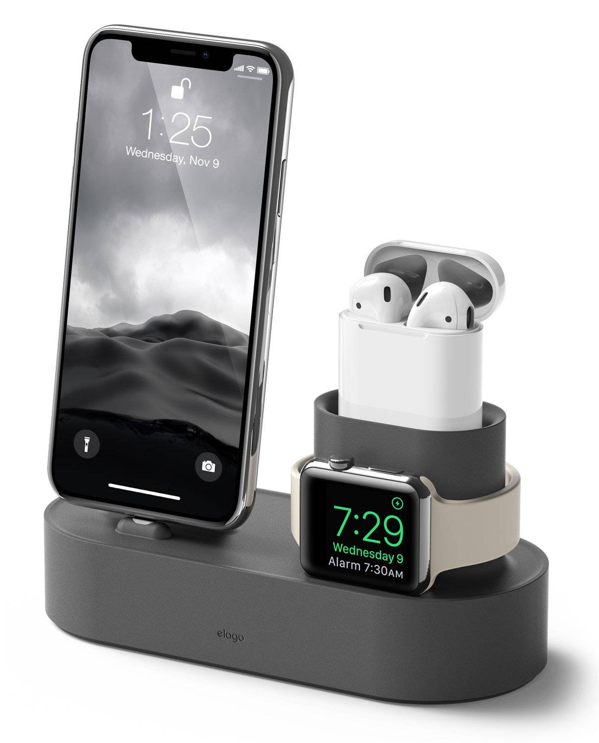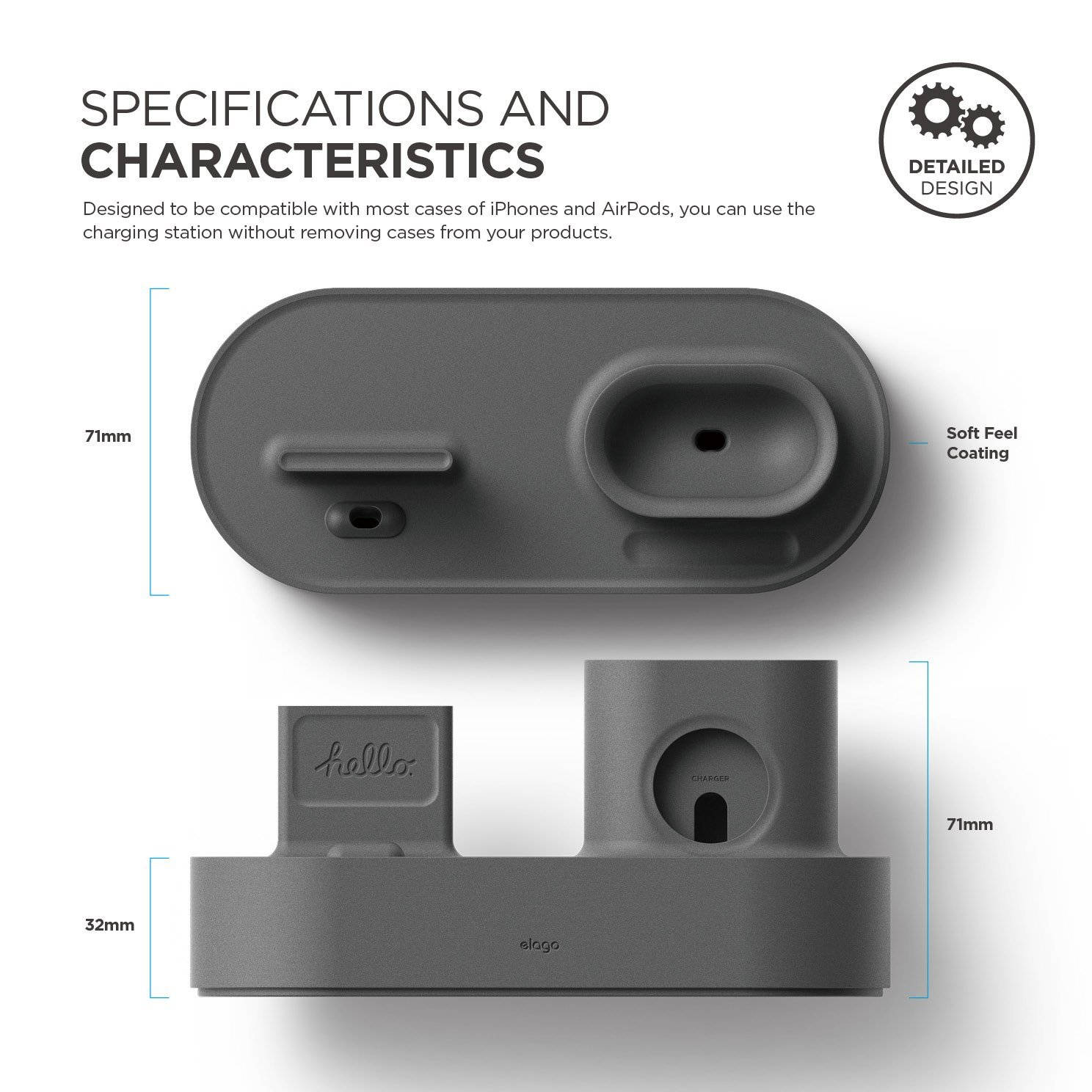 Elago Trio Charging Hub - силиконова поставка за зареждане на iPhone, Apple Watch и Apple AirPods (тъмносива)