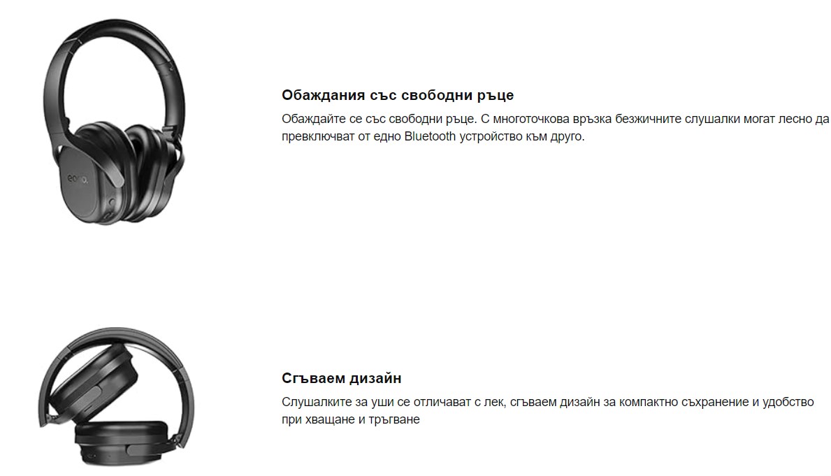 - Лек и сгъваем дизайн - Лекият и компактен сгъваем дизайн прави тези слушалки винаги готови за пътуване