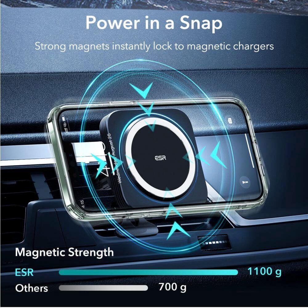 - Инсталираните магнити позволяват прецизно свързване с телефона