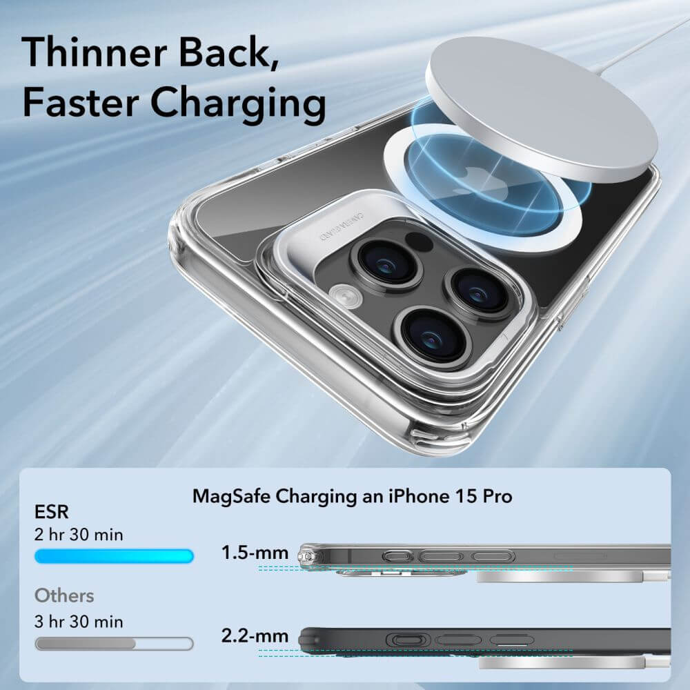 ESR Classic Kickstand HaloLock MagSafe Case - хибриден кейс с висока степен на защита с MagSafe за iPhone 15 Pro (прозрачен)