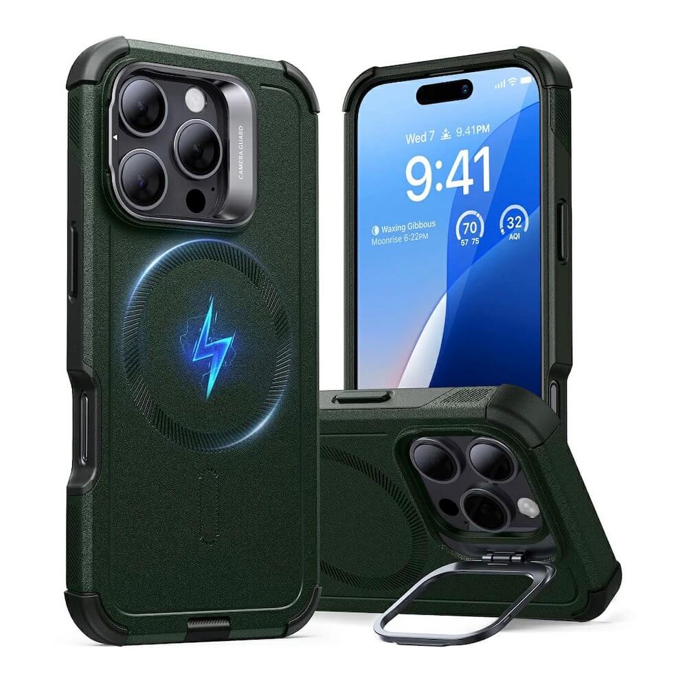 ESR Cyber Armor HaloLock MagSafe Case - хибриден кейс с висока степен на защита с MagSafe за iPhone 16 Pro (зелен)
