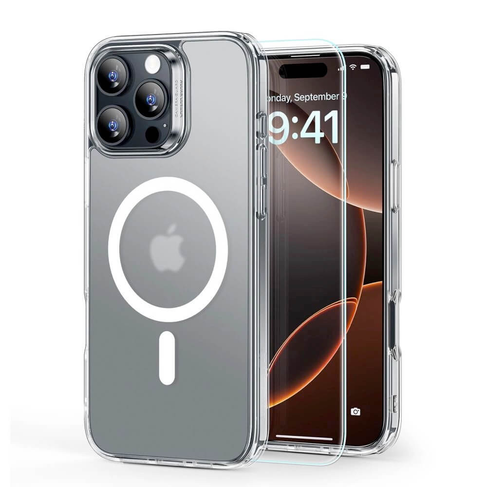 ESR Halolock Classic Hybrid MagSafe Protection Set - хибриден удароустойчив кейс с MagSafe и стъклено защитно покритие за дисплея на iPhone 16 Pro Max (прозрачен-мат)