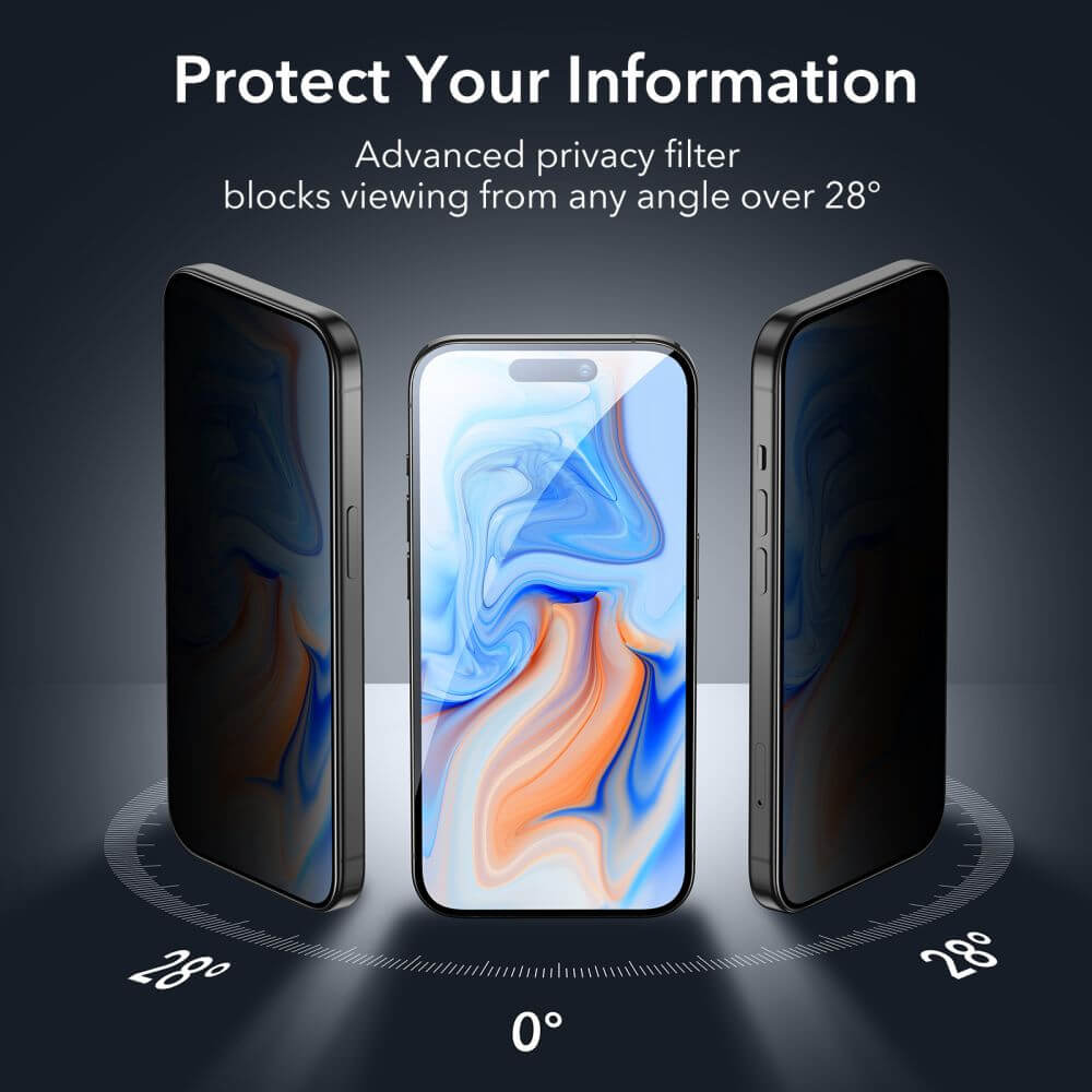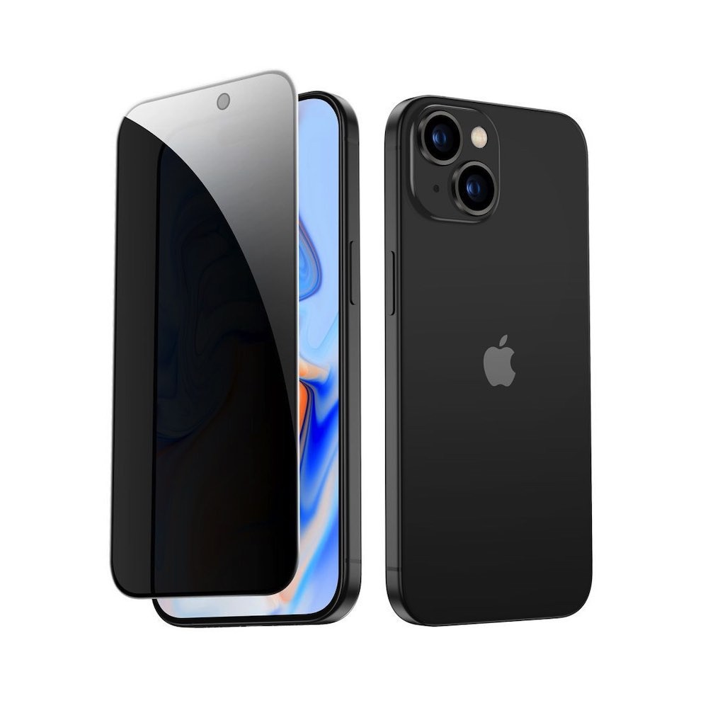 ESR Privacy Full Cover Tempered Glass - калено стъклено защитно покритие с определен ъгъл на виждане за дисплея на iPhone 15 (черен-прозрачен)