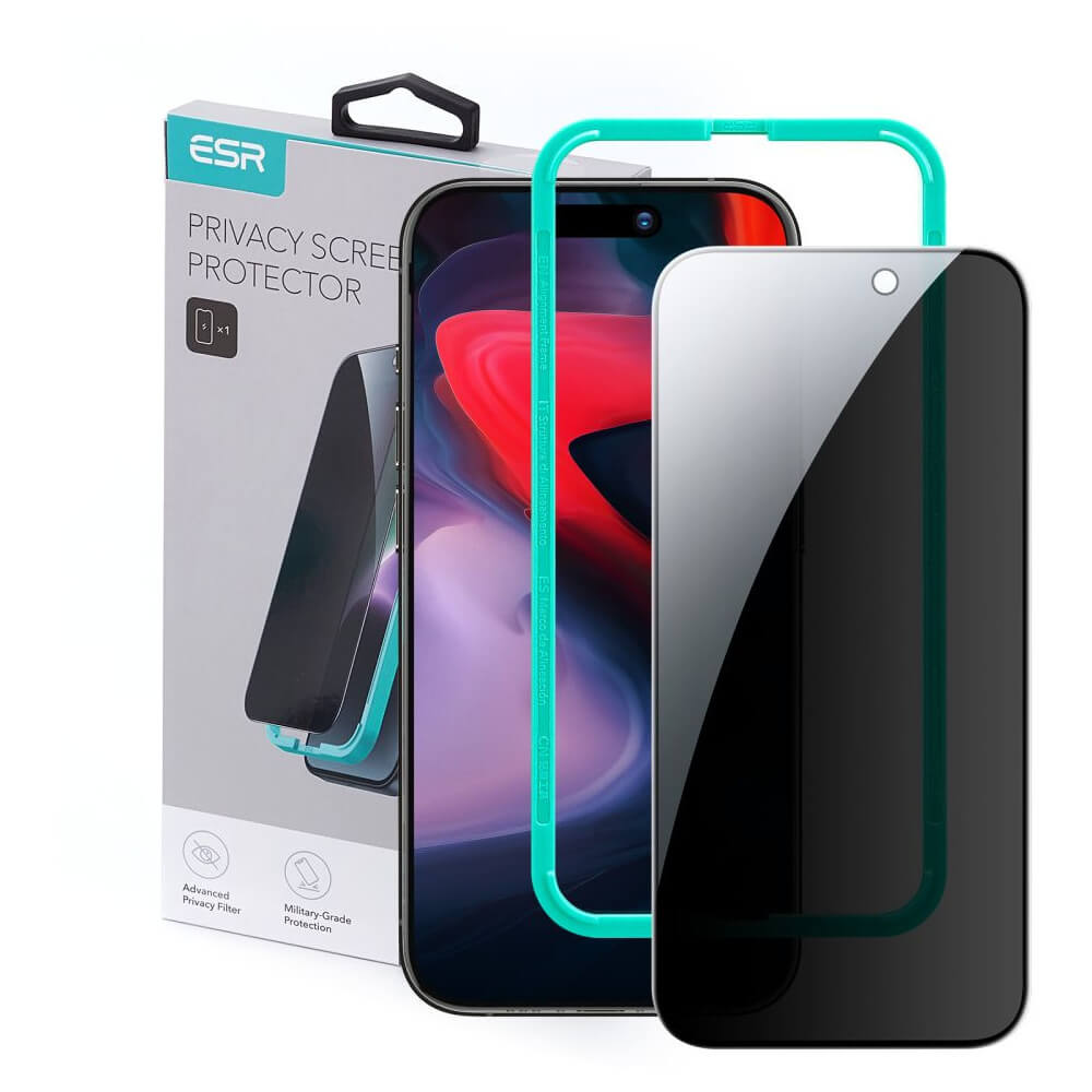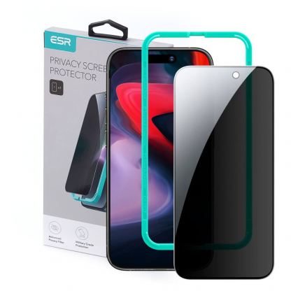 ESR Privacy Full Cover Tempered Glass - калено стъклено защитно покритие с определен ъгъл на виждане за дисплея на iPhone 15 Pro Max (черен-прозрачен)