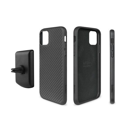 Evutec Karbon AER Series AFIX + Magnetic Mount - кевларен кейс и магнитна поставка за кола за iPhone 11 (черен)
