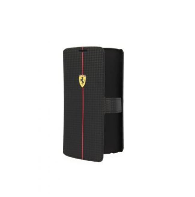 Ferrari Formula One Carbon Flip Case - кожен флип кейс тип портфейл за LG G Flex (черен)