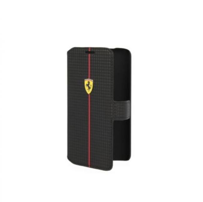Ferrari Formula One Carbon Flip Case - кожен флип кейс тип портфейл за LG G2 mini (черен)