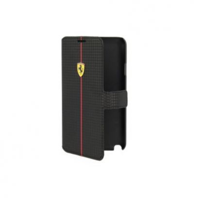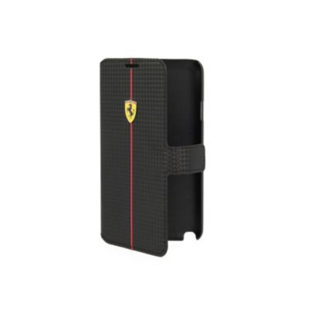 Ferrari Formula One Carbon Flip Case - кожен флип кейс тип портфейл за Samsung Galaxy Note 3 Neo (черен)
