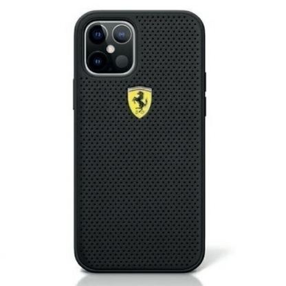 Ferrari On Track Perforated Hard Case - кожен кейс за iPhone 12, iPhone 12 Pro (черен)