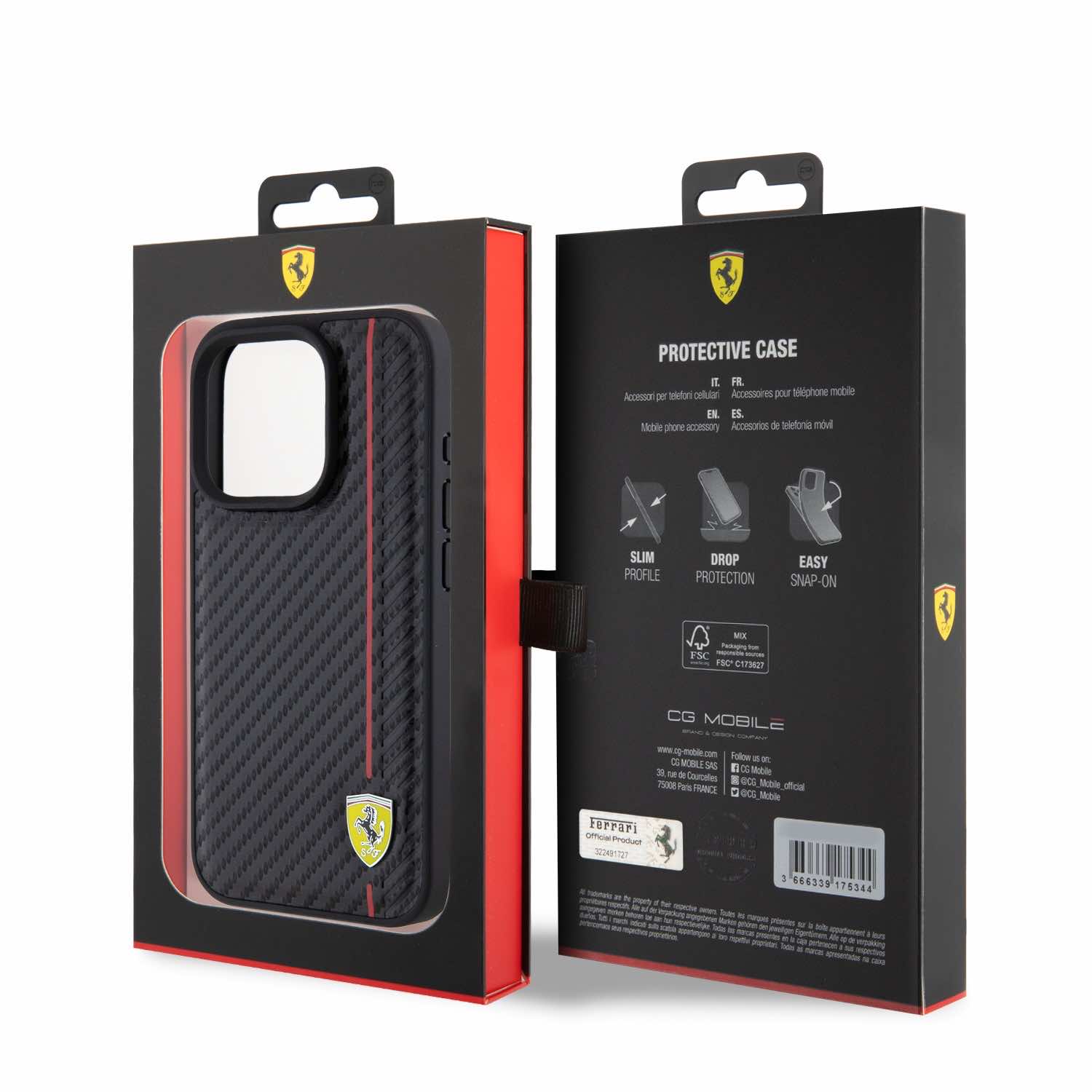 Открийте изключителния Ferrari PU Leather Carbon Vertical Red Line Case, официално лицензиран продукт на Ferrari, проектиран от CG Mobile (Франция). С логото на Ferrari, този кейс не само че предлага стил, но и високо качество на материали и изработка.