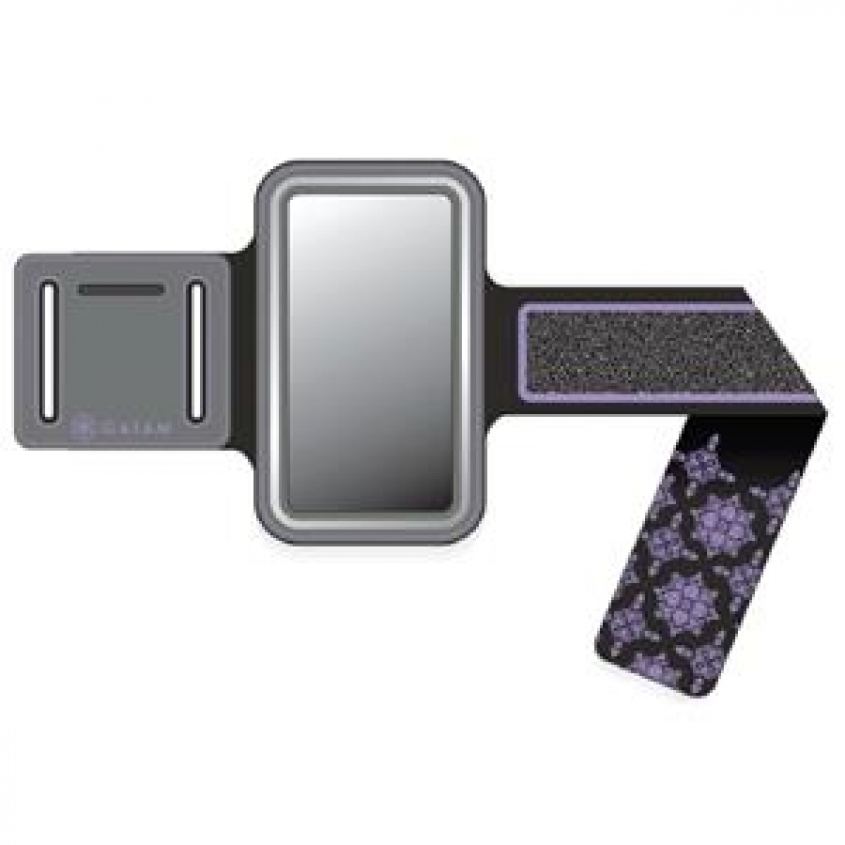 Gaiam Armband Small - спортен калъф за ръката за смартфони с дисплеи от 4.1 до 4.8 инча (черен-лилав)
