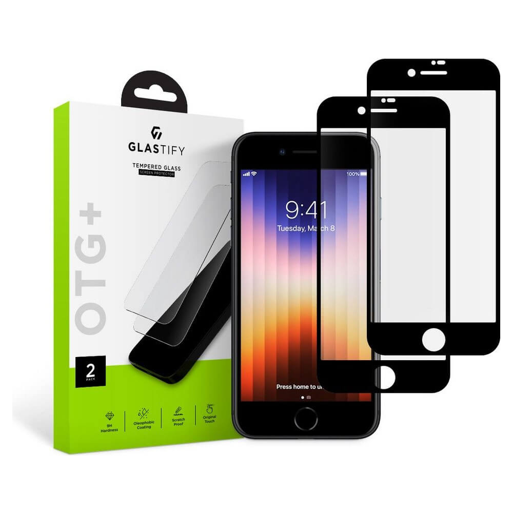 Glastify OTG Plus 2.5D Tempered Glass 2 Pack - 2 броя калени стъклени защитни покрития за iPhone SE (2022), iPhone SE (2020), iPhone 8, iPhone 7 (черен-прозрачен) (2 броя)