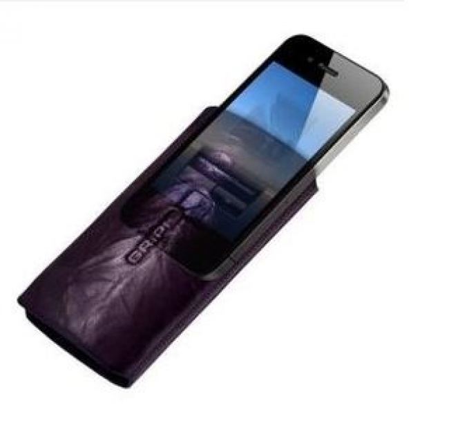 GRIPIS TwinCase - кожен калъф за iPhone 4 (лилав - ръчна изработка)