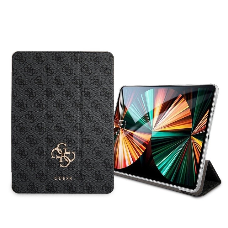 Guess 4G Folio Cover - дизайнерски кожен кейс и поставка за iPad Pro 12.9 M1 (2021) (сив)