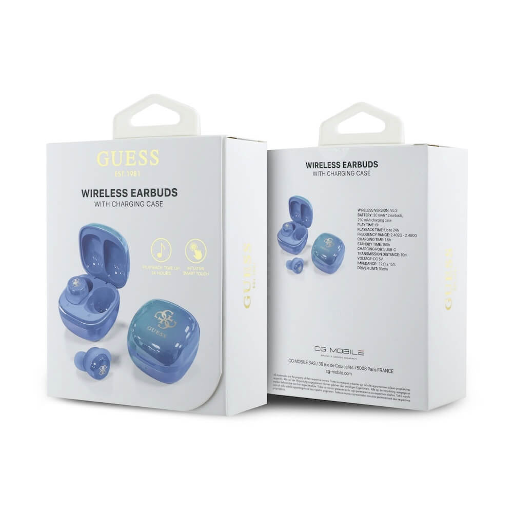 Guess 4G Logo Mini True Wireless Stereo TWS Headset - безжични блутут слушалки със зареждащ кейс за мобилни устройства (син)