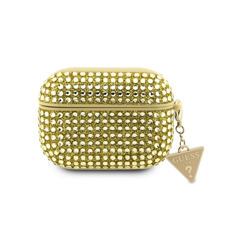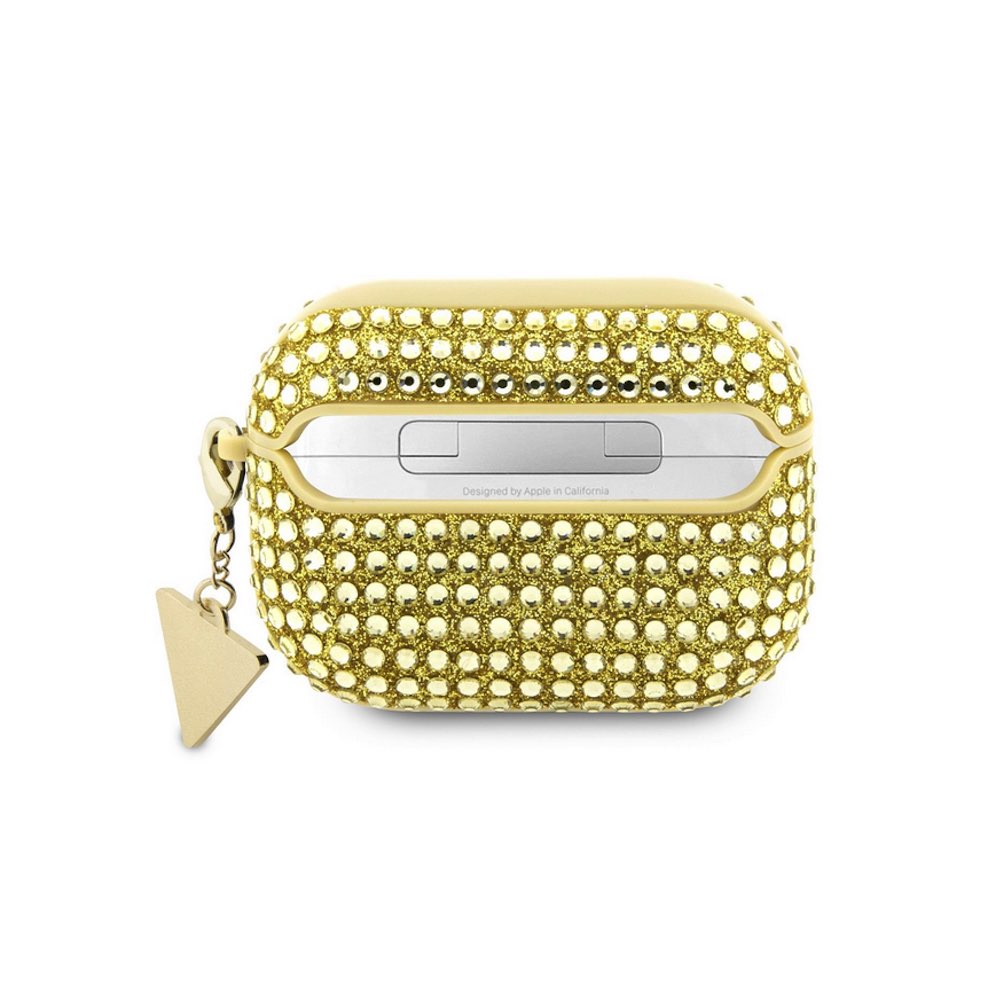 Guess Airpods Pro 2 Rhinestones Triangle Metal Logo Case - кожен кейс с висулка за Apple Airpods Pro 2 (златист)