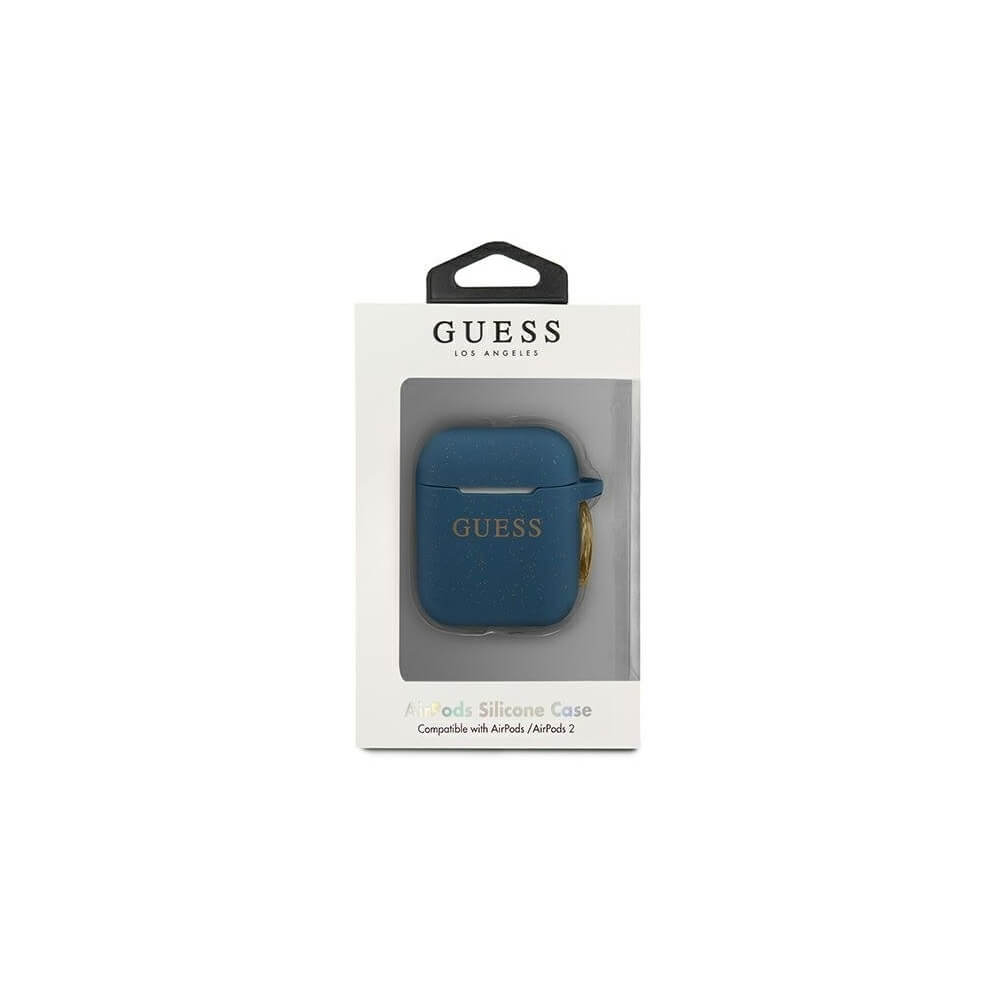 Guess Airpods Silicone Glitter Case - силиконов калъф с карабинер за Apple Airpods и Apple Airpods 2 (син)