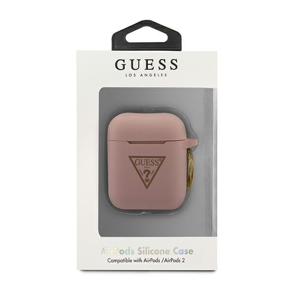 Guess Airpods Triangle Logo Silicone Case - силиконов калъф с карабинер за Apple Airpods и Apple Airpods 2 (розов)