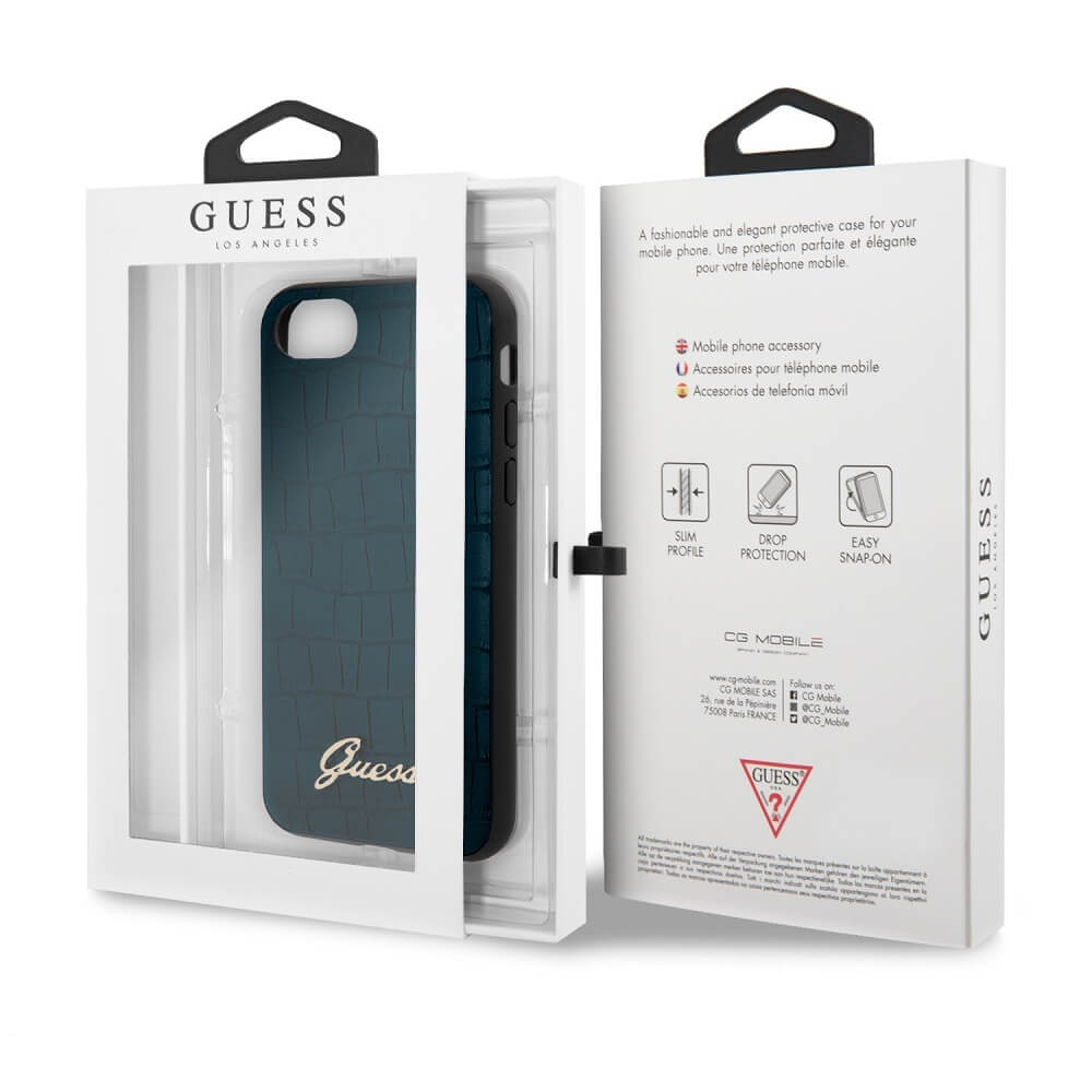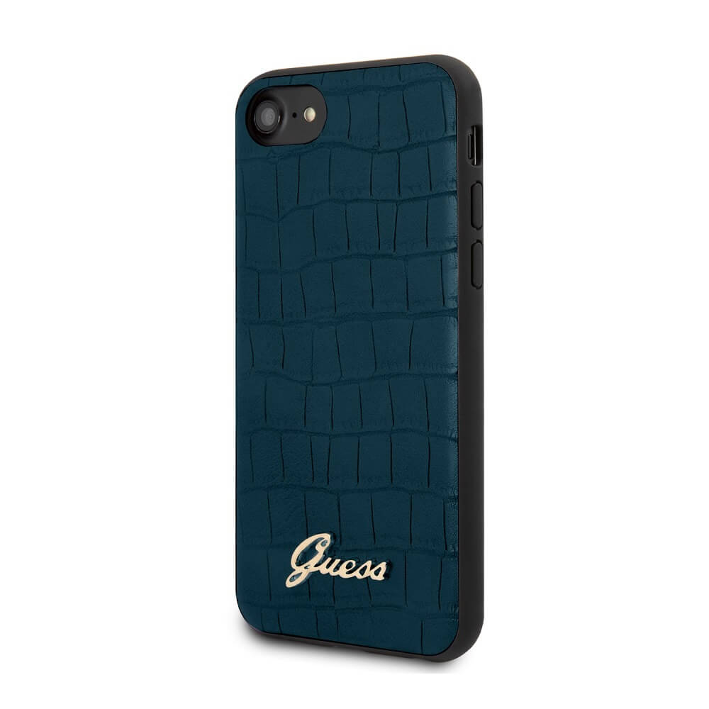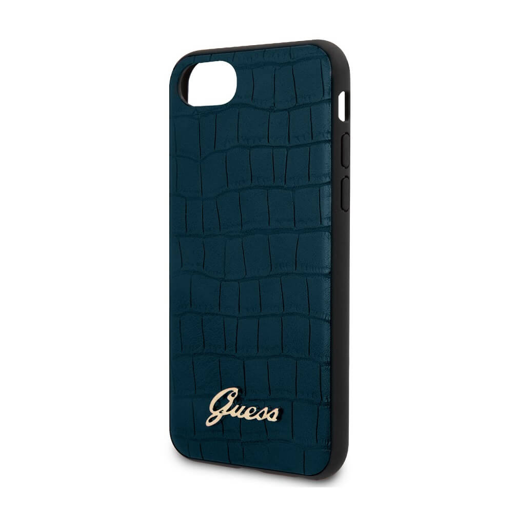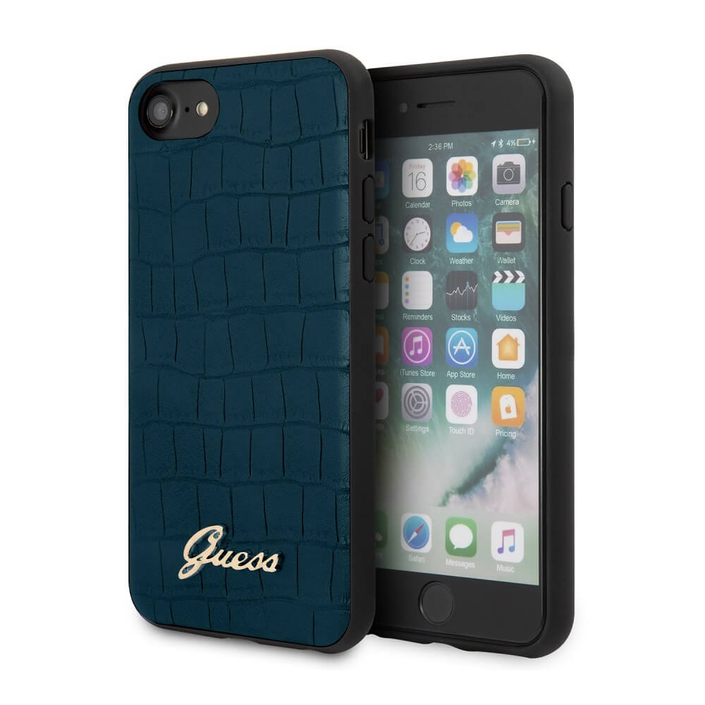 Guess Croco Cover - дизайнерски кожен кейс за iPhone SE (2020), iPhone 8, iPhone 7 (син)