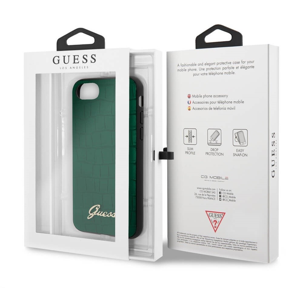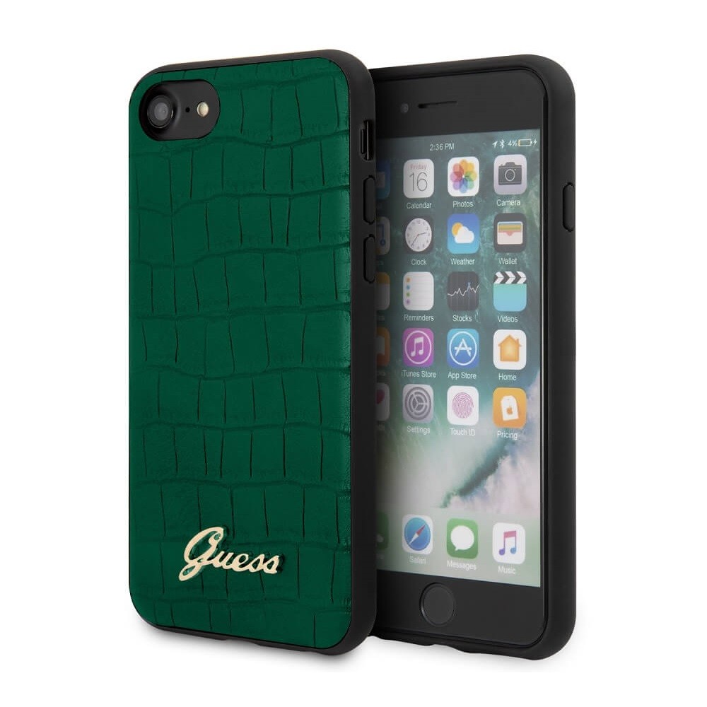 Guess Croco Cover - дизайнерски кожен кейс за iPhone SE (2020), iPhone 8, iPhone 7 (зелен)