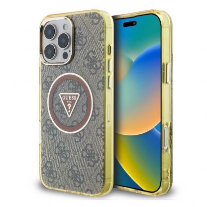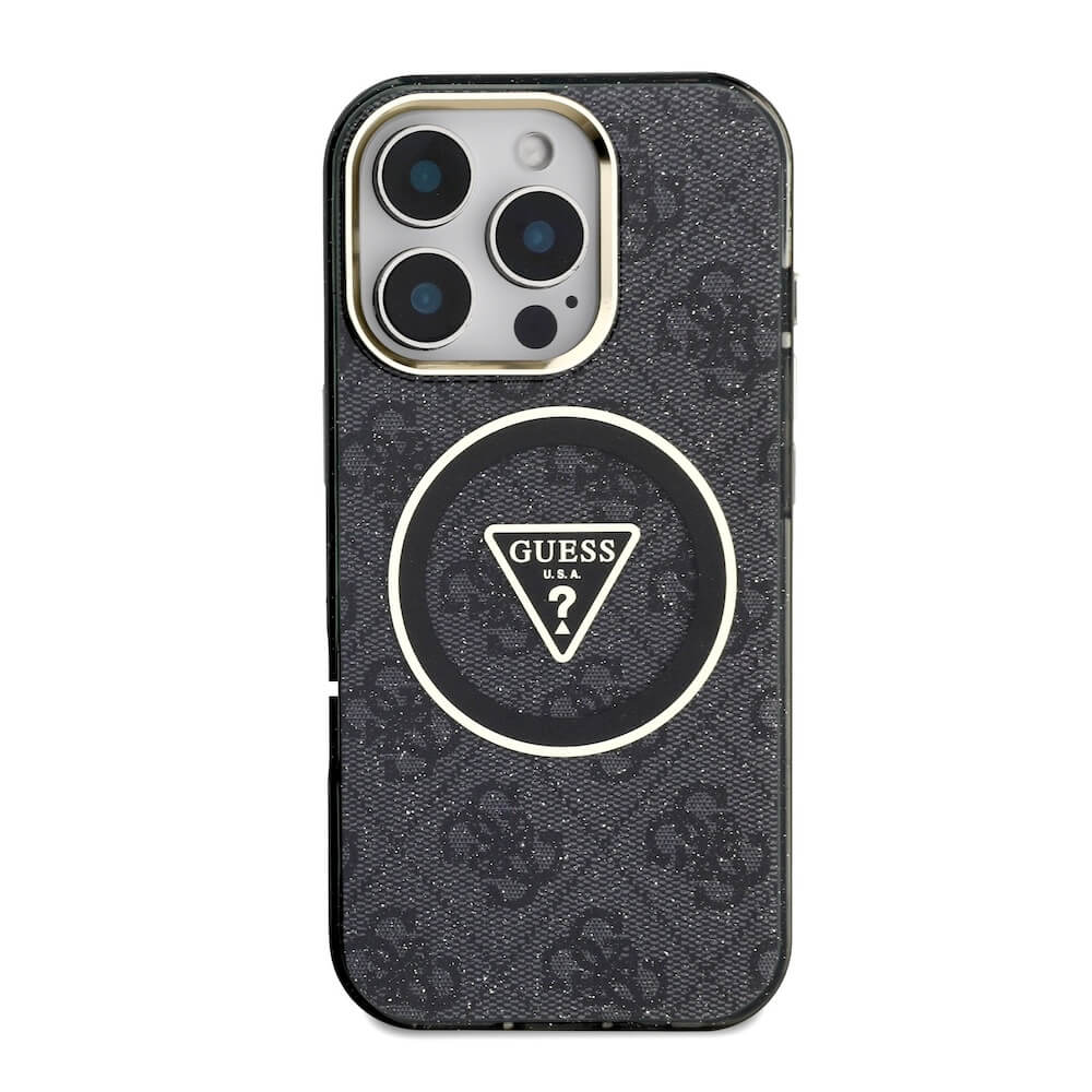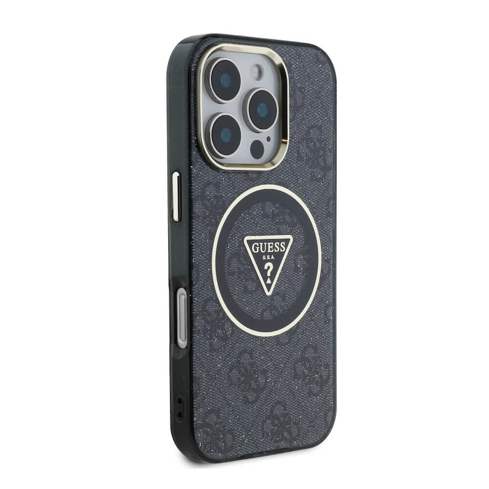 Guess IML 4G Glitter And Triangle Logo MagSafe Case - хибриден удароустойчив кейс с MagSafe за iPhone 16 Pro (черен)