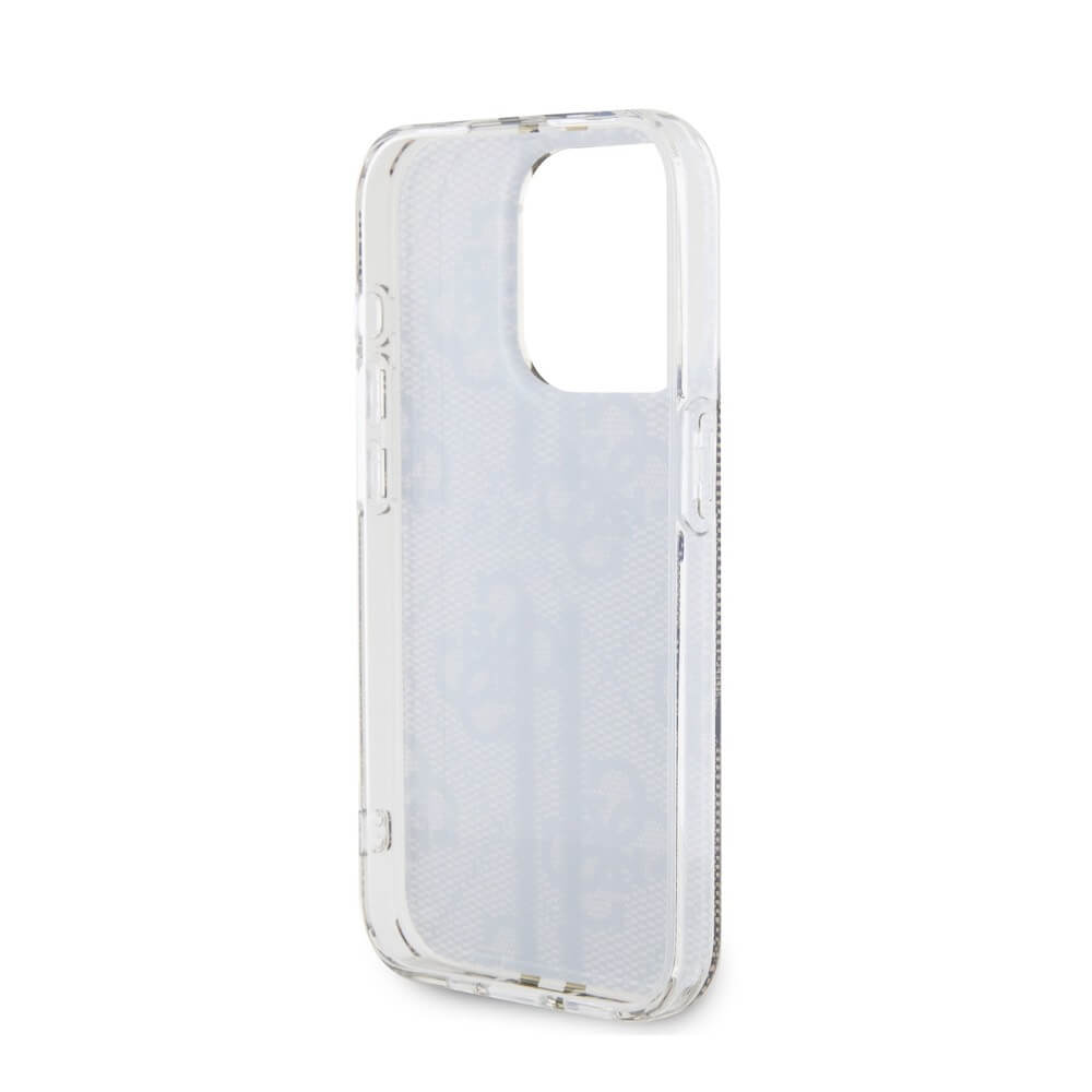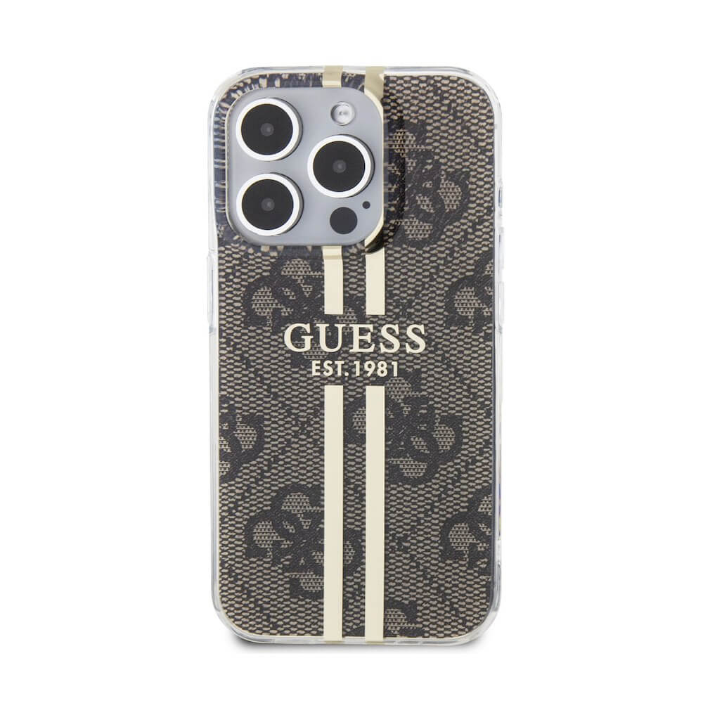 Guess IML 4G Gold Stripe Case - дизайнерски силиконов кейс за iPhone 15 Pro (кафяв)