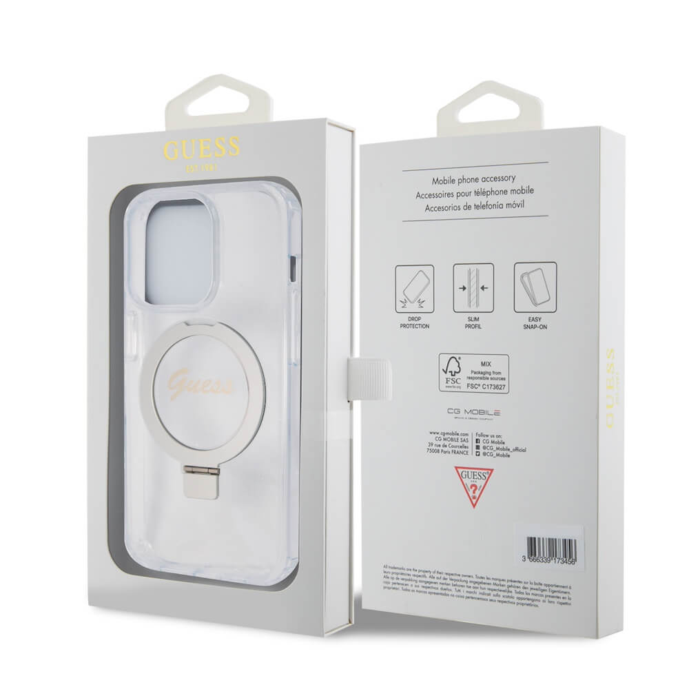 Guess IML Ringstand Glitter MagSafe Case - хибриден удароустойчив кейс с MagSafe за iPhone 15 Pro Max (прозрачен)