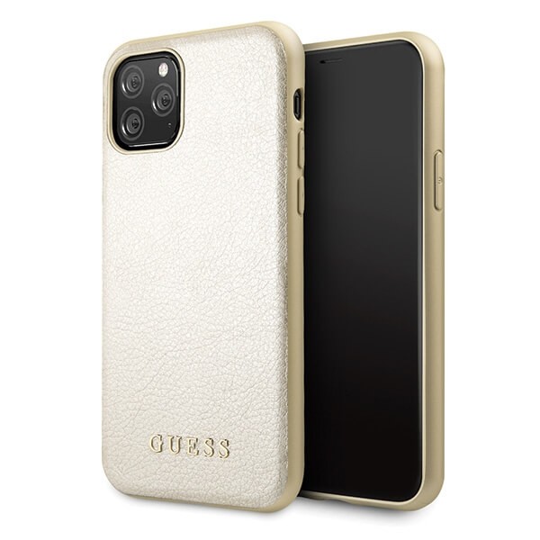 Guess Iridescent Leather Hard Case - дизайнерски кожен кейс за iPhone 11 Pro (златист)