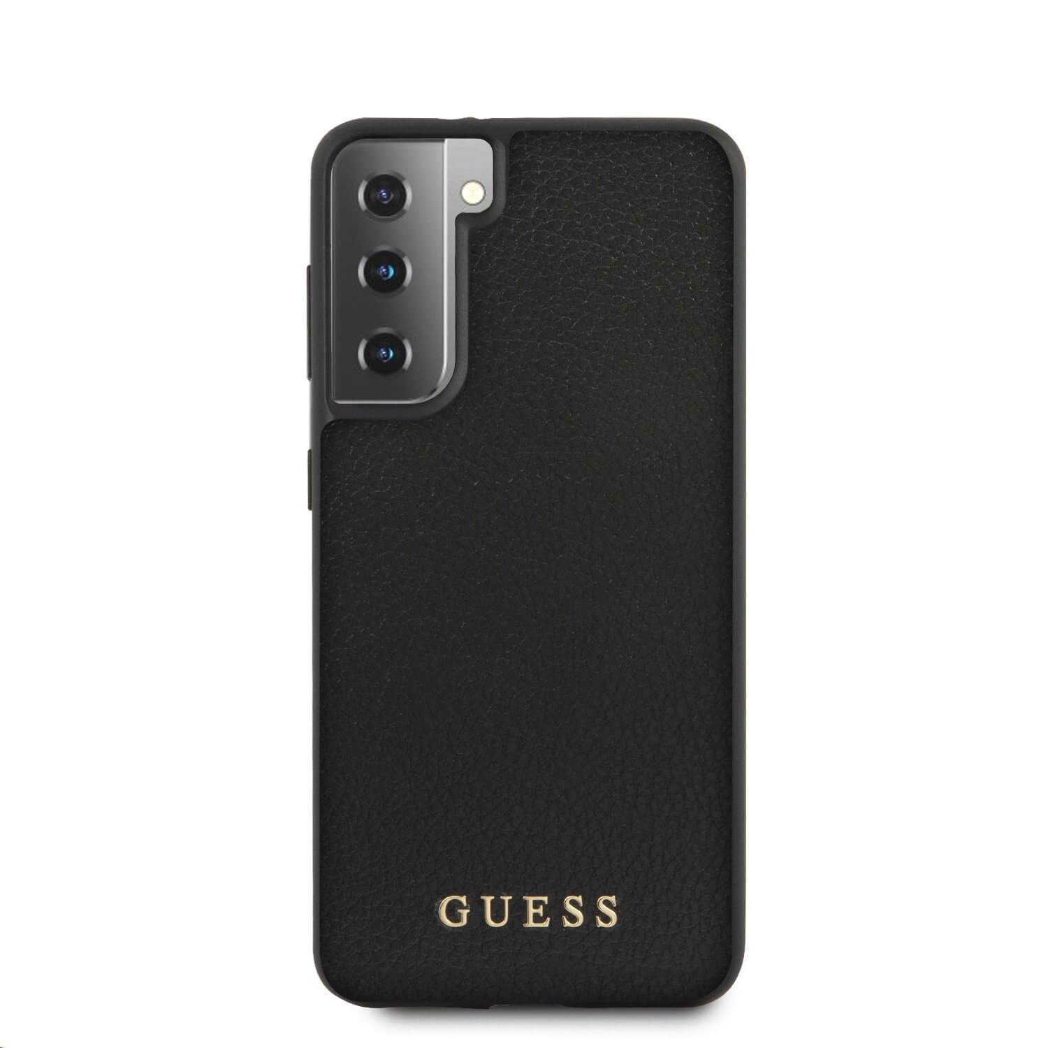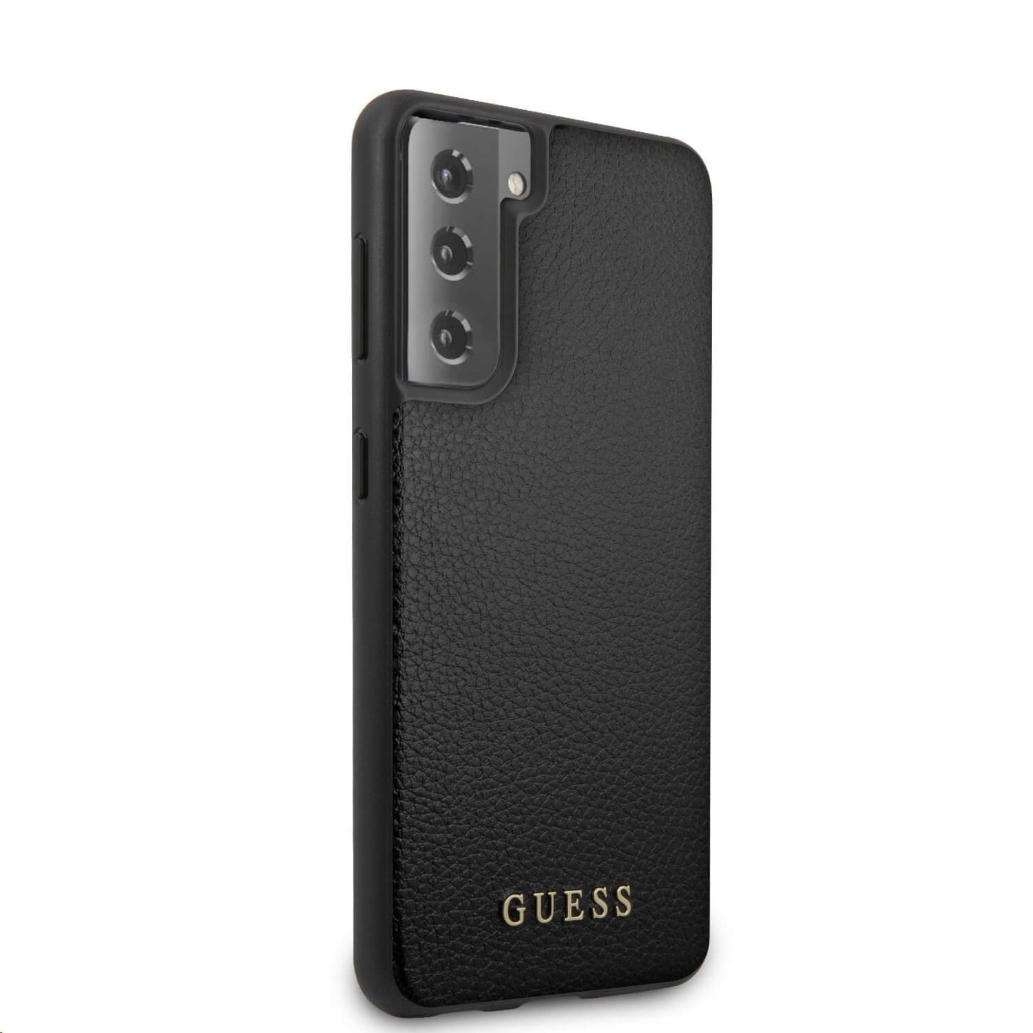 Guess Iridescent Leather Hard Case - дизайнерски кожен кейс за Samsung Galaxy S21 (черен)