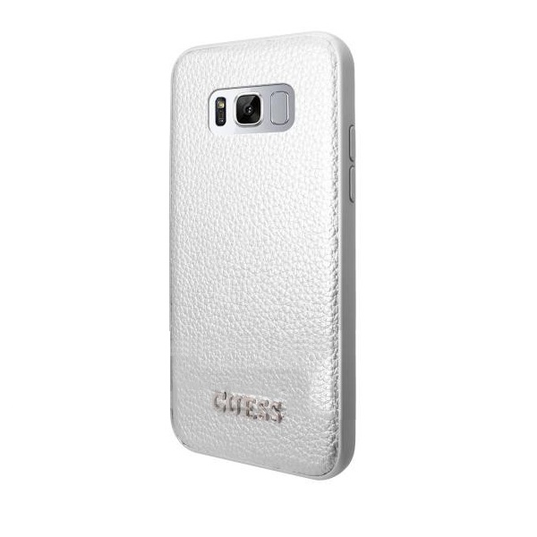 Guess Iridescent Leather Hard Case - дизайнерски кожен кейс за Samsung Galaxy S8 Plus (сребрист)