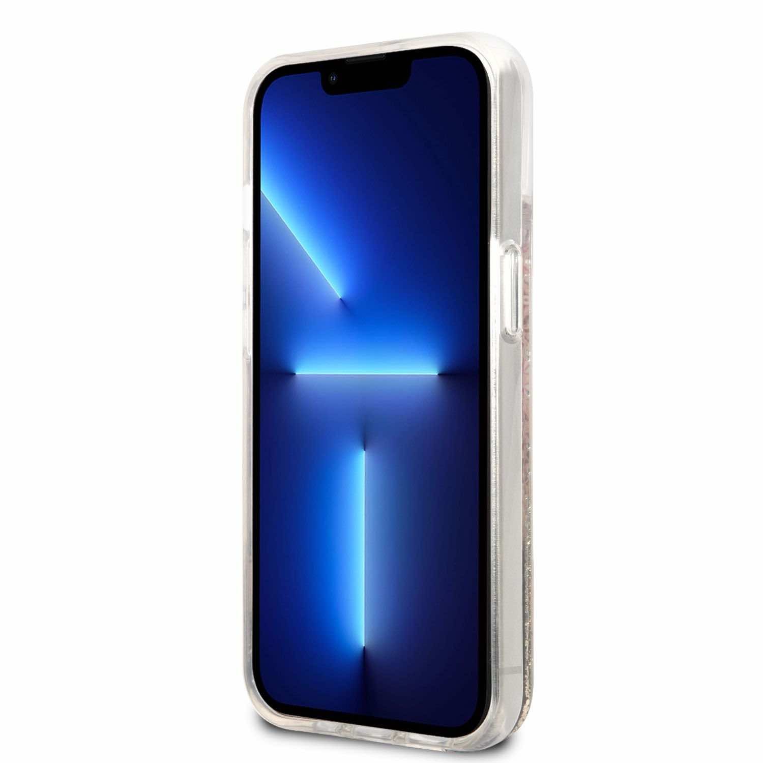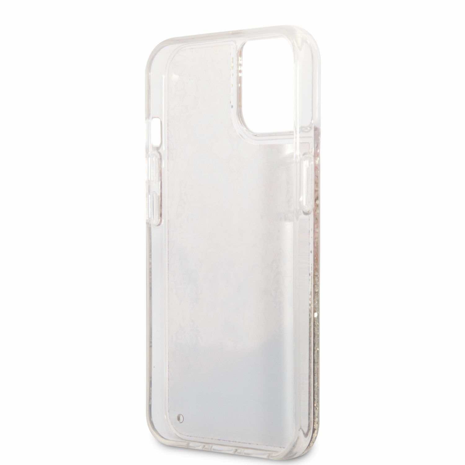 Guess Liquid Glitter Flower Case - дизайнерски кейс с висока защита за iPhone 13 mini (златист)