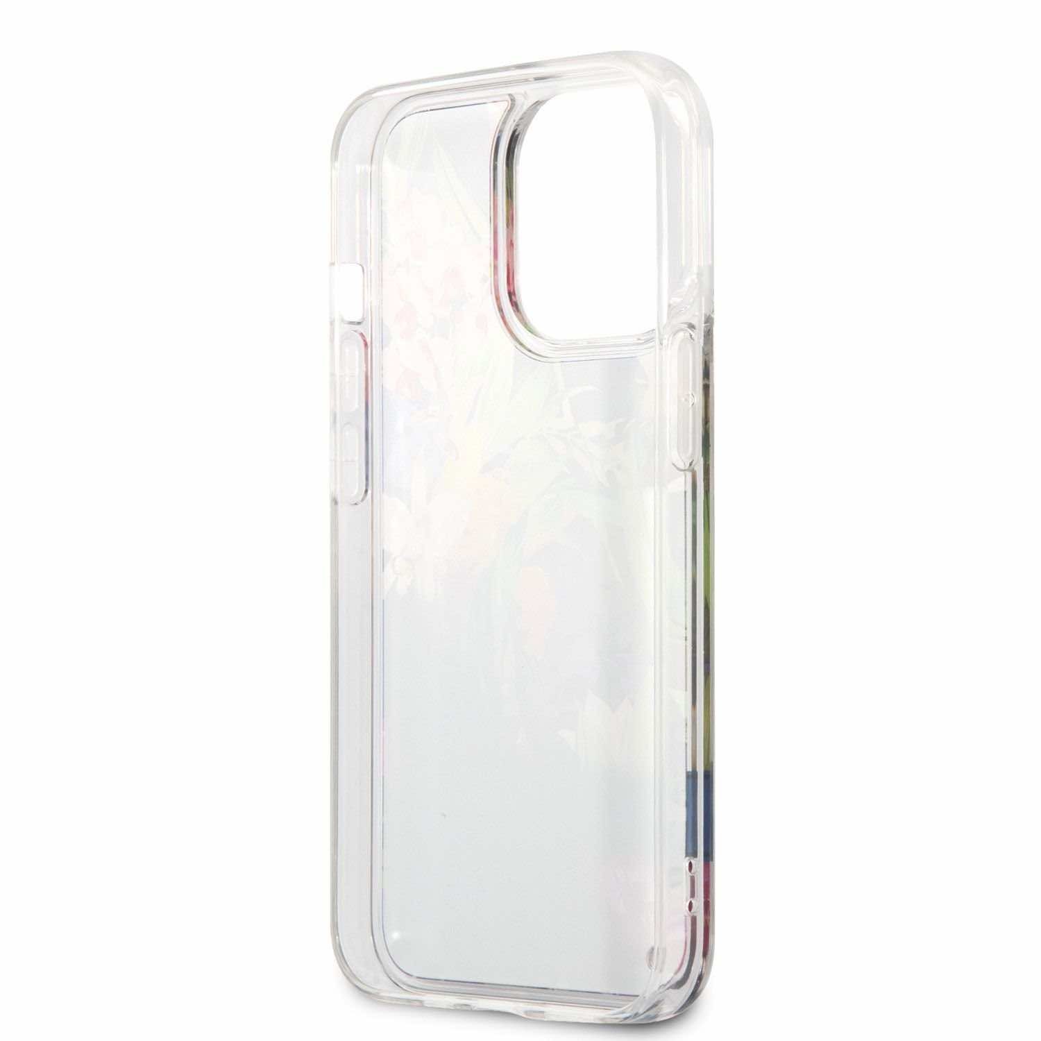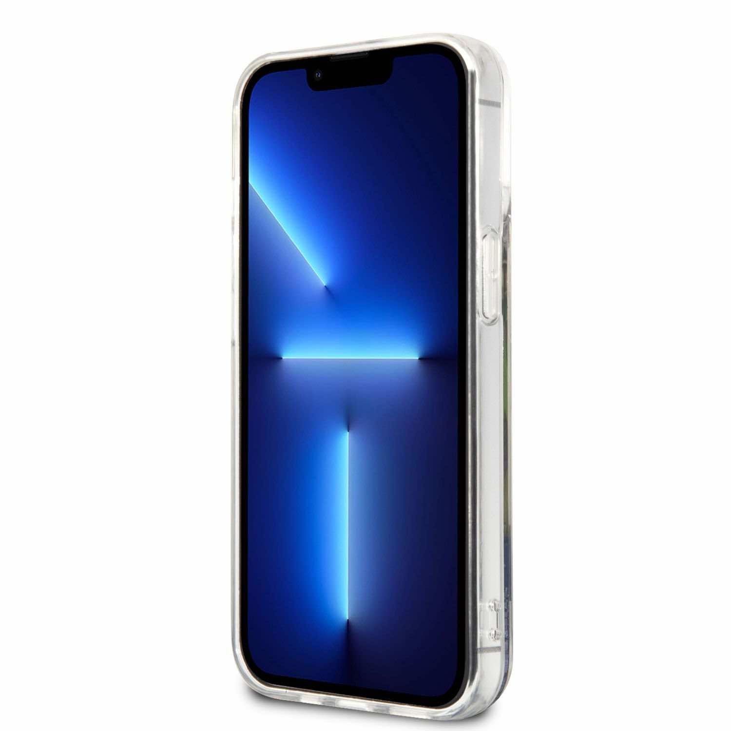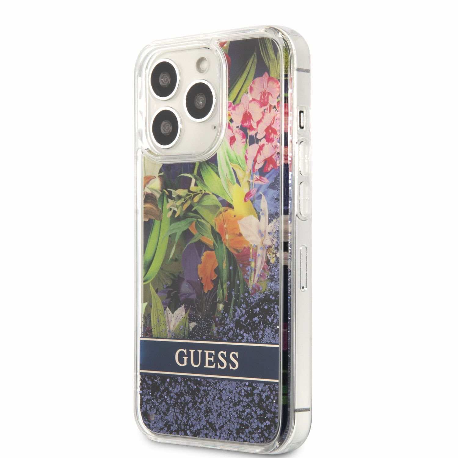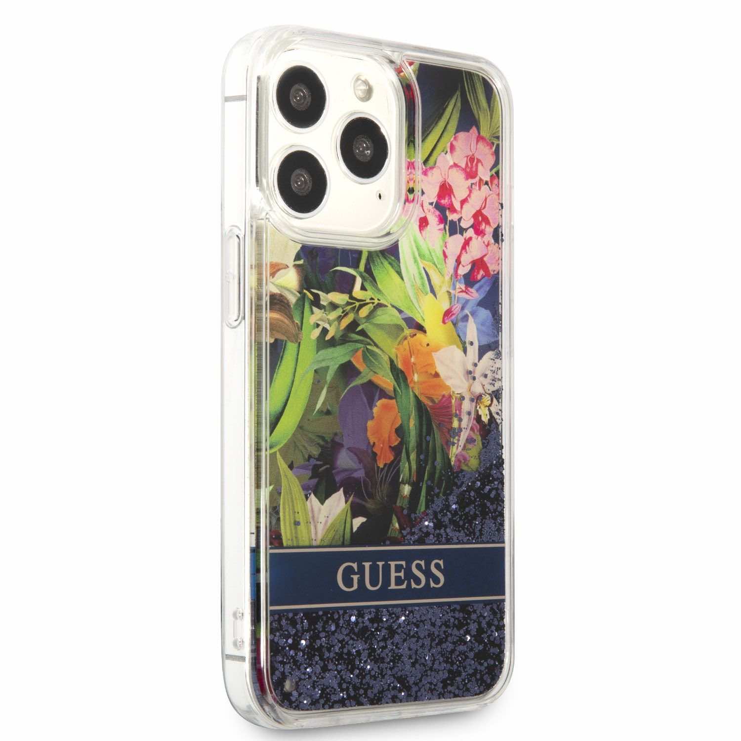 Guess Liquid Glitter Flower Case - дизайнерски кейс с висока защита за iPhone 13 Pro (син)
