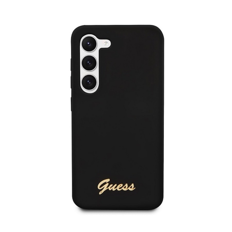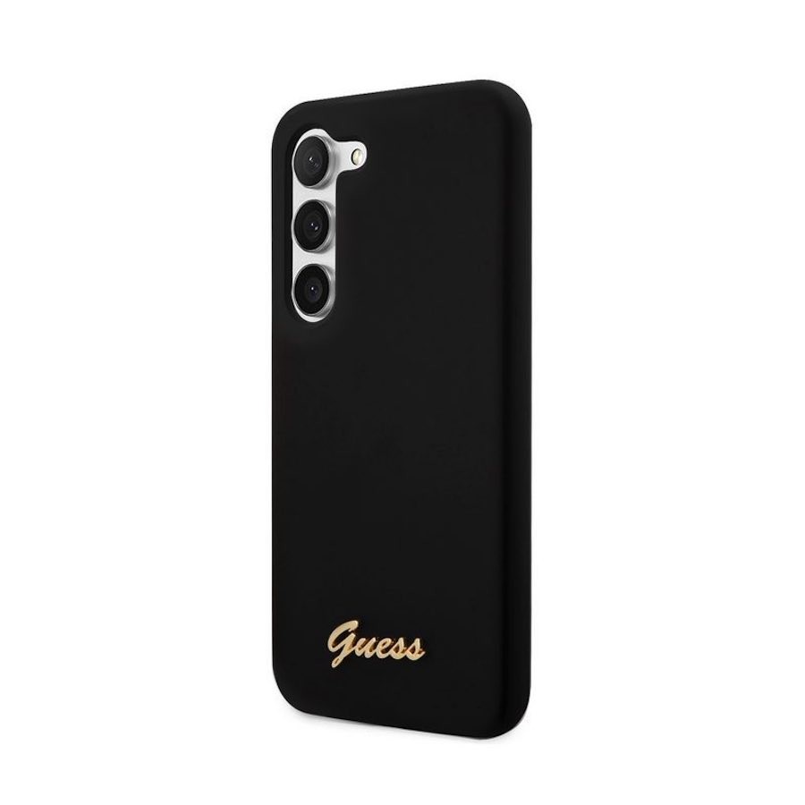 Guess Liquid Silicone Metal Logo Case - силиконов (TPU) калъф за Samsung Galaxy S23 (черен)