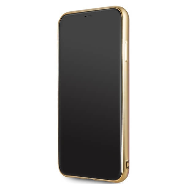 Guess Peony Liquid Glitter Case - дизайнерски кейс с висока защита за iPhone 11 Pro Max (златист)