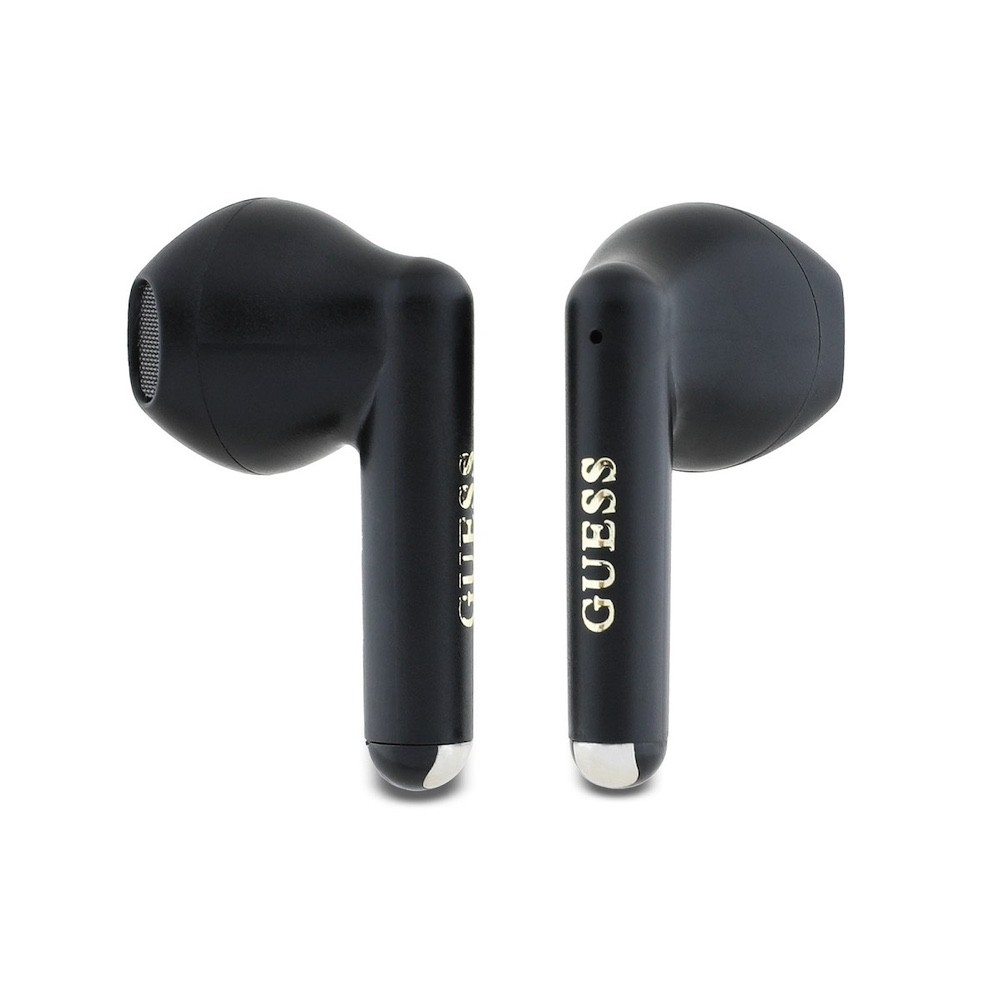 Guess Printed Classic Logo Stereo TWS Headset - безжични блутут слушалки със зареждащ кейс за мобилни устройства (черен)