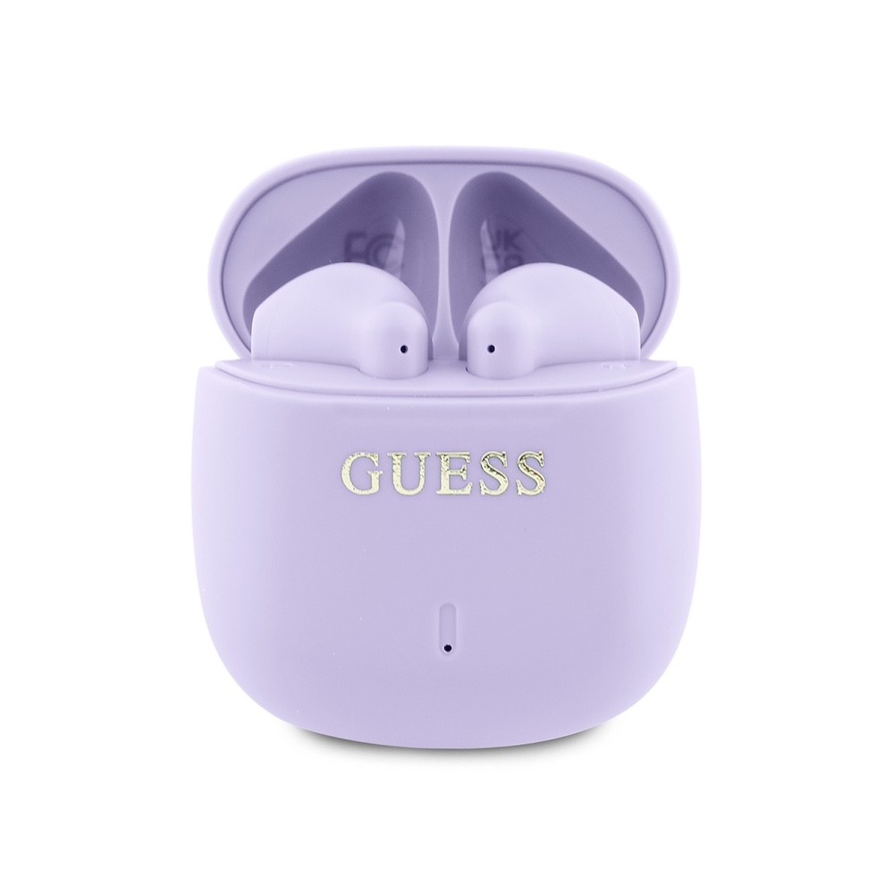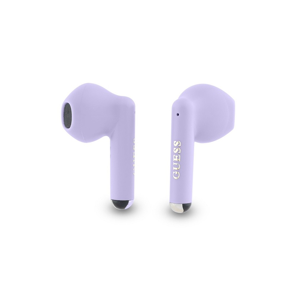 Guess Printed Classic Logo Stereo TWS Headset - безжични блутут слушалки със зареждащ кейс за мобилни устройства (лилав)