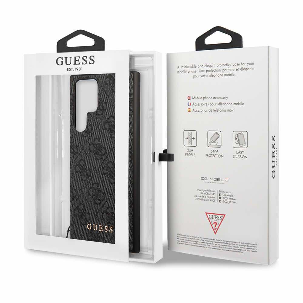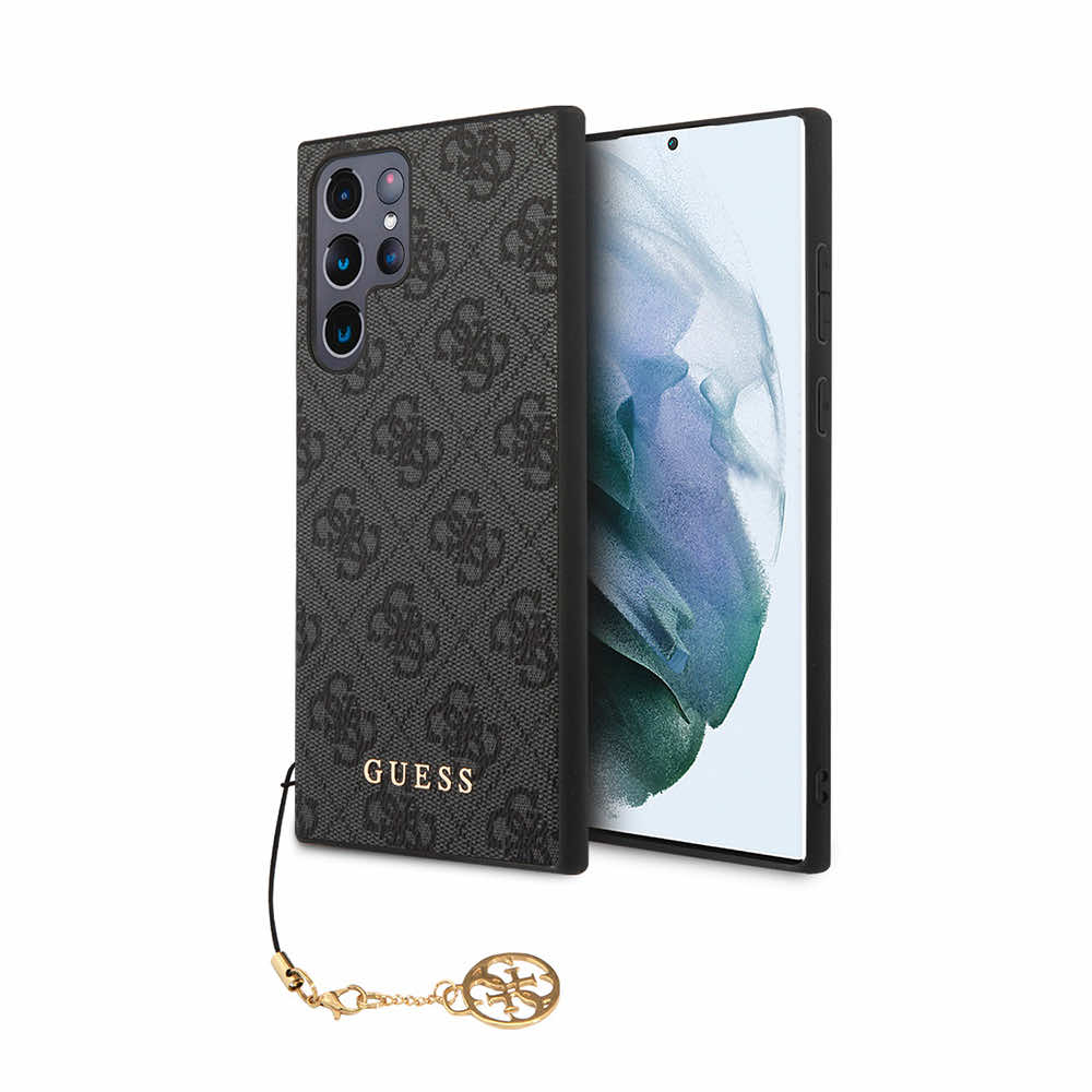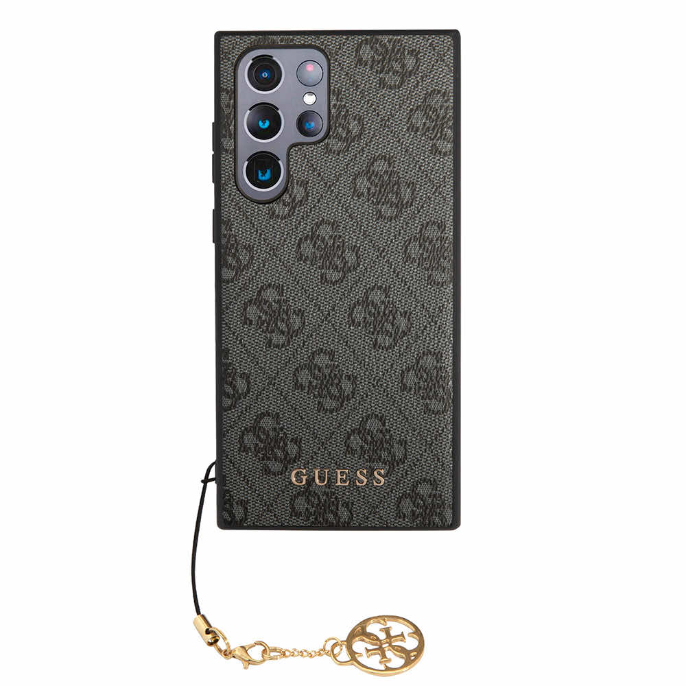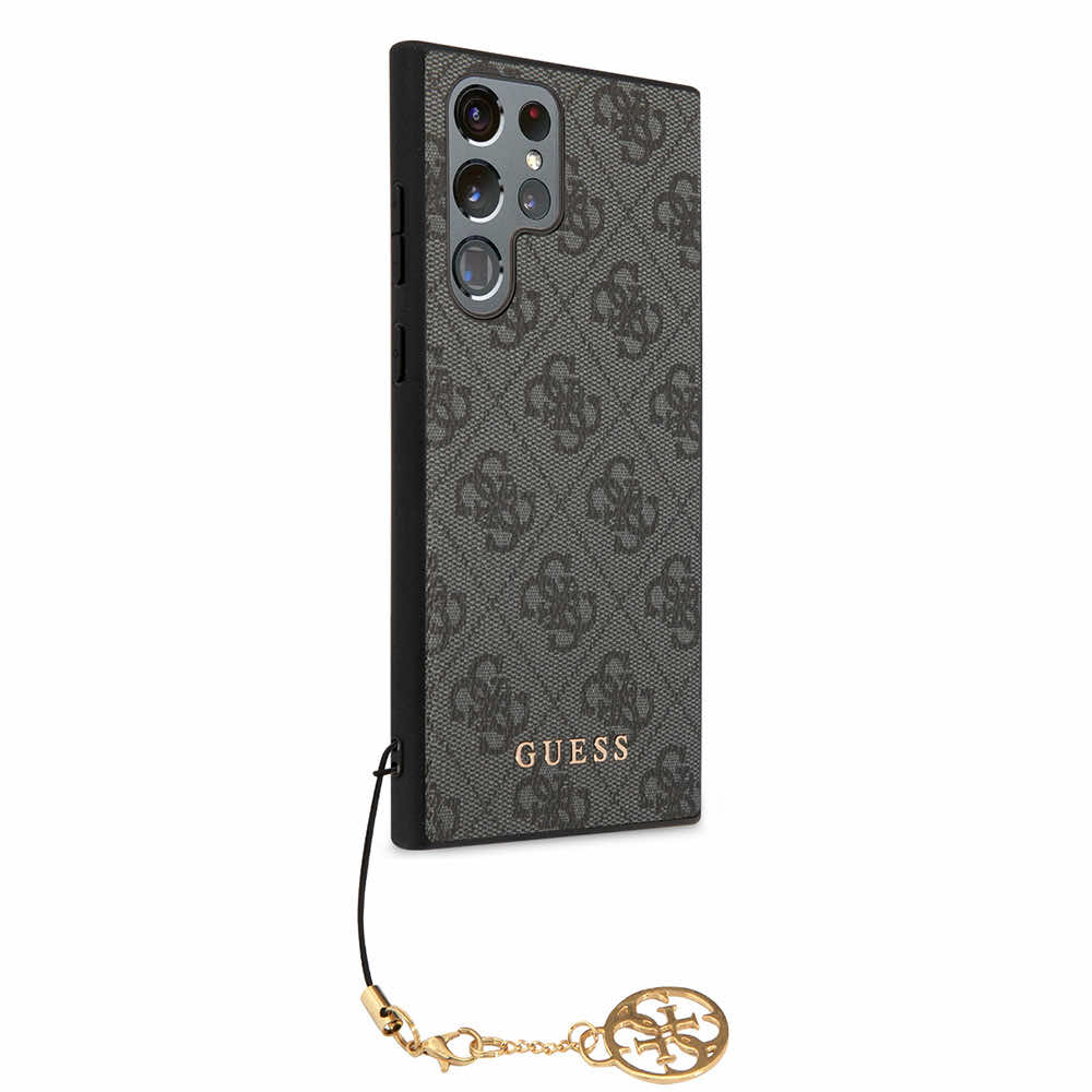 Guess PU 4G Charms Collection Leather Hard Case - дизайнерски кожен кейс за Samsung Galaxy S24 Ultra (сив)